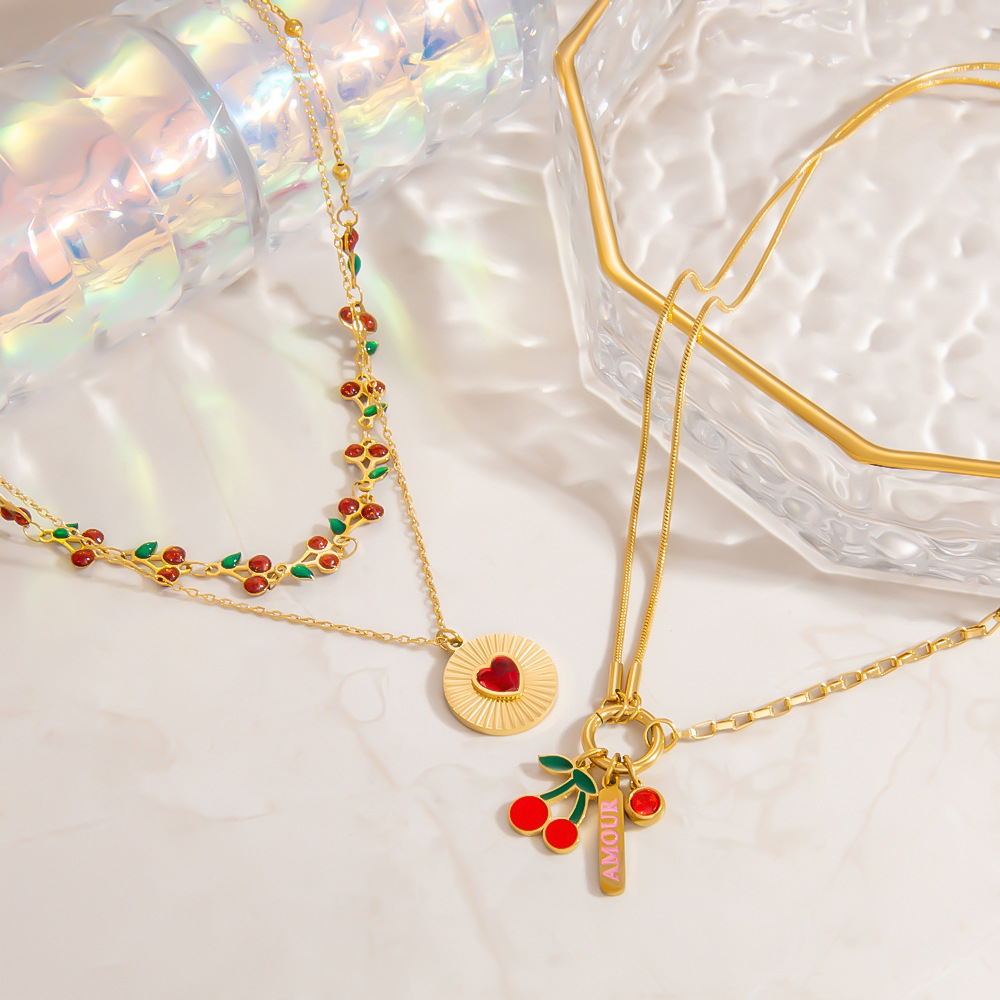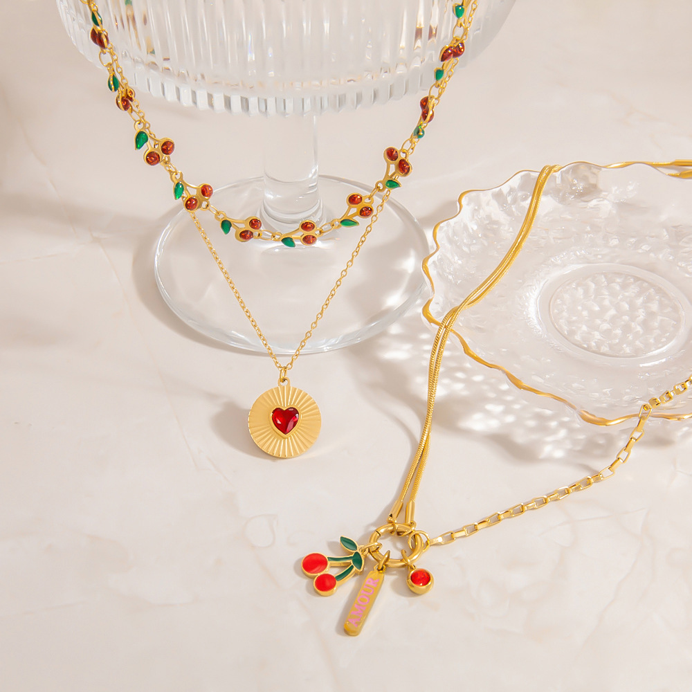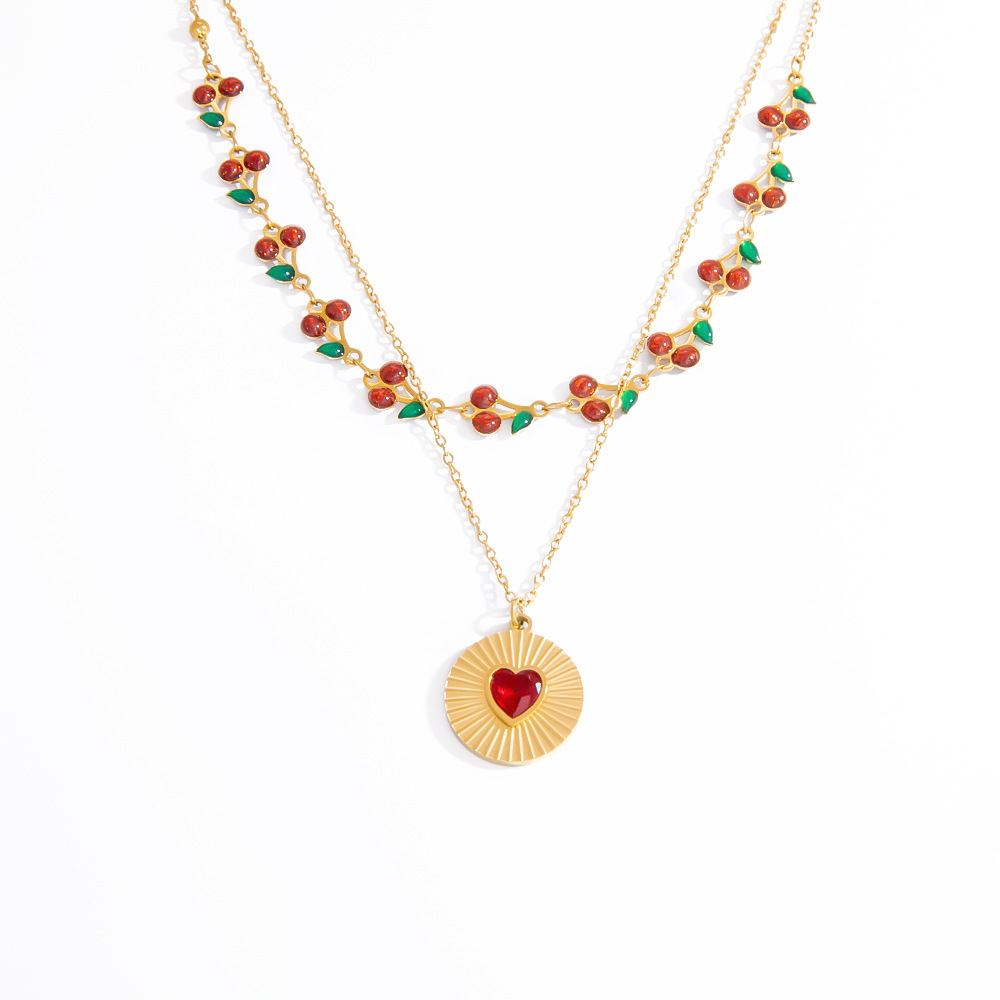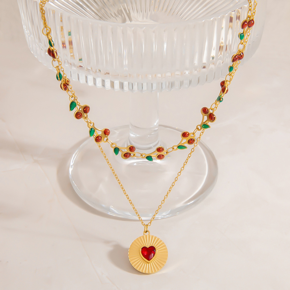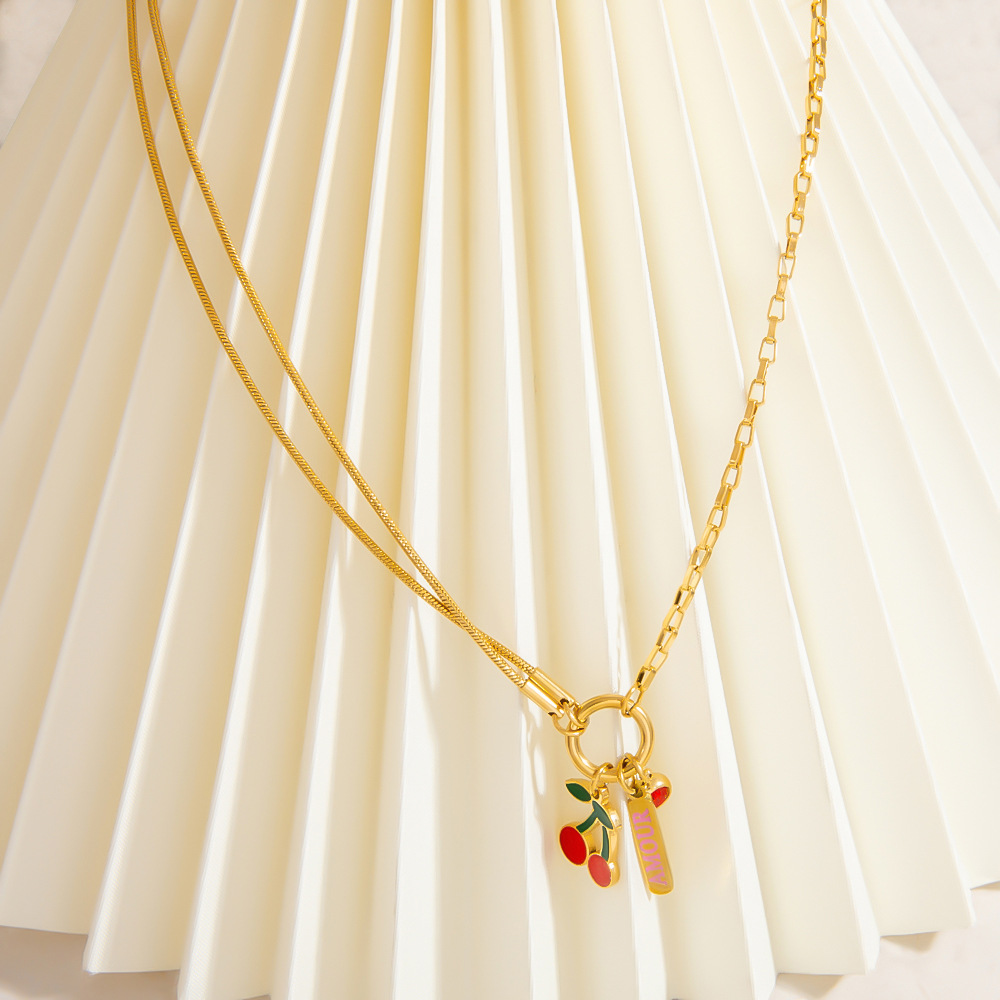 Nerezová ocel šperky náhrdelník, 304 Stainless Steel, barva pozlacený, Dvojitá vrstva & módní šperky & smalt & s drahokamu, více barev na výběr, Prodáno By PC