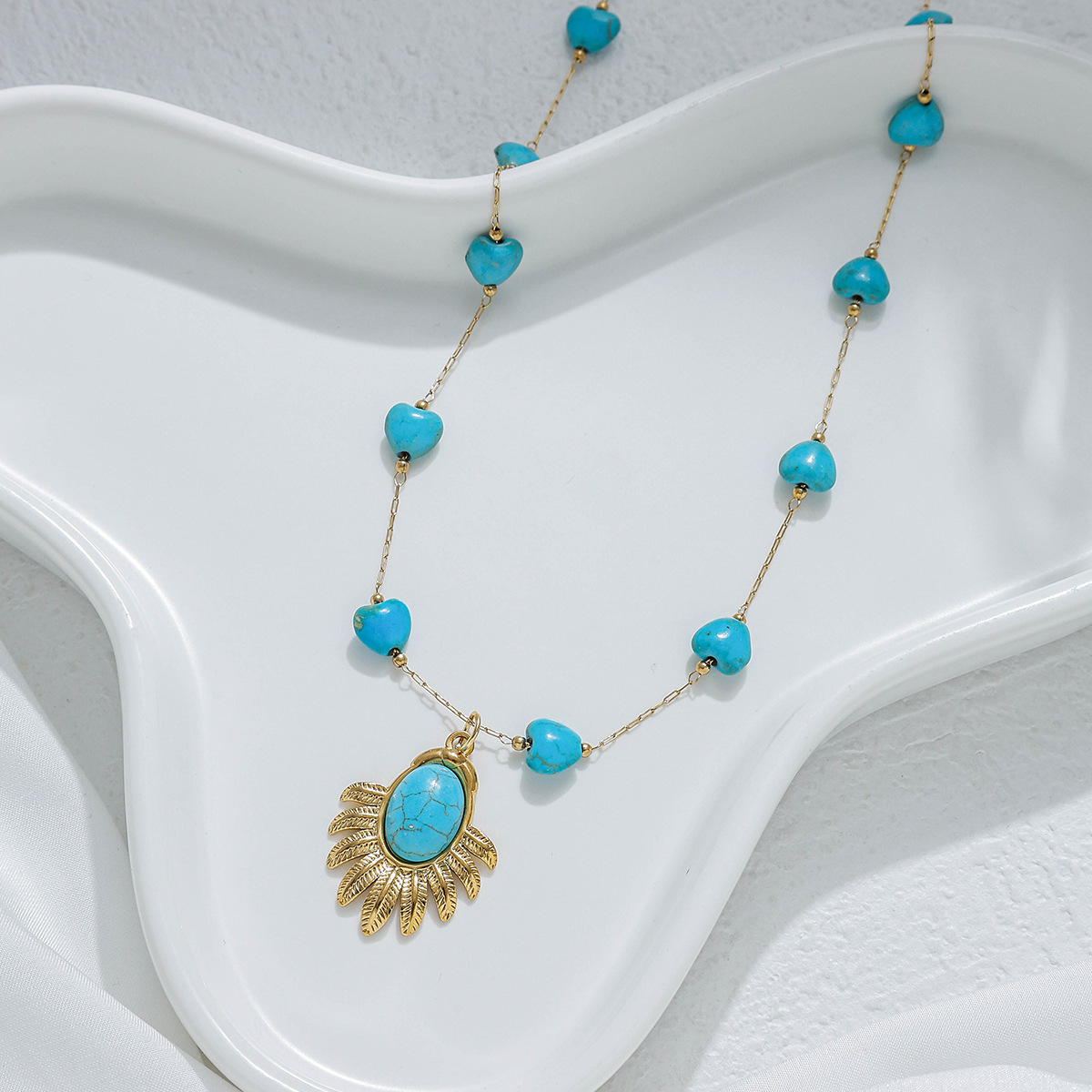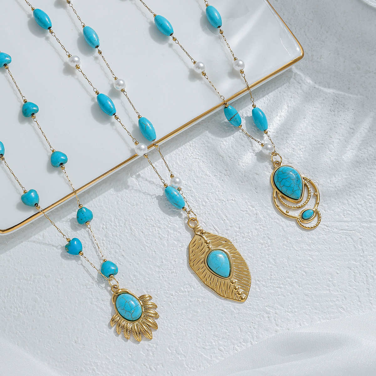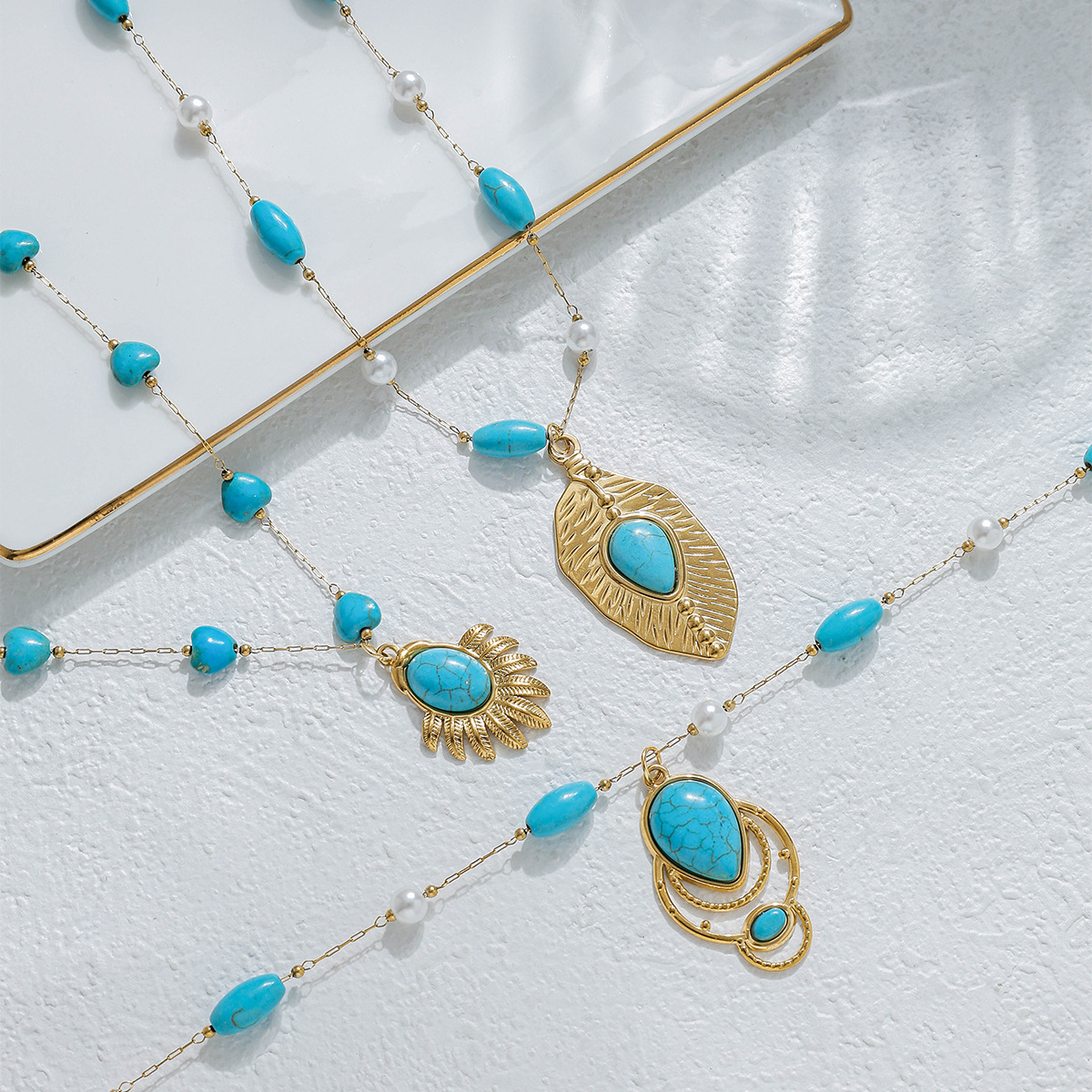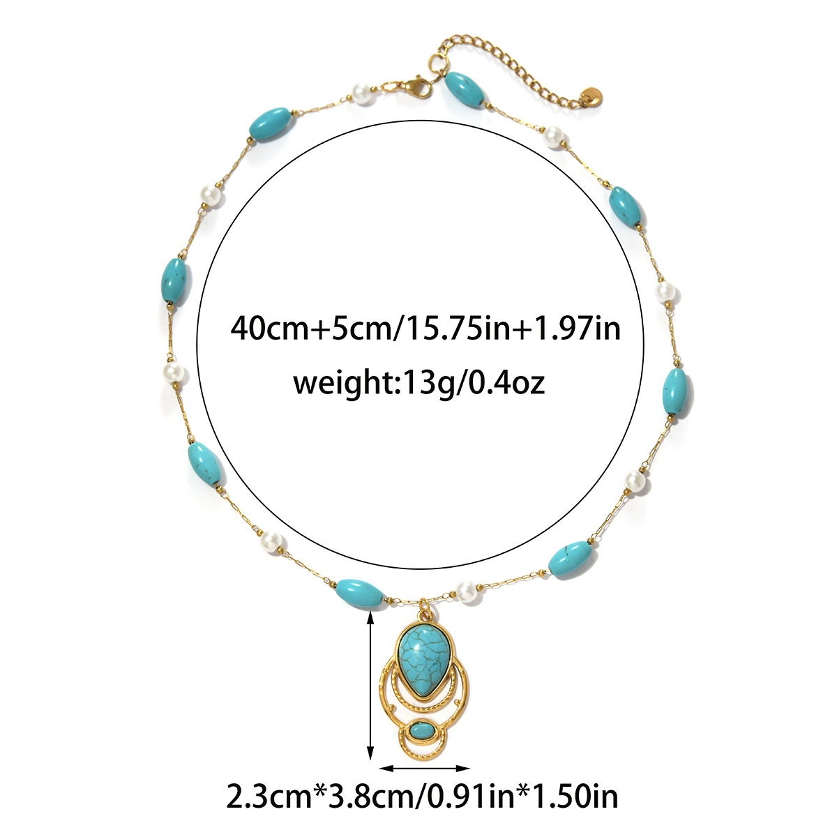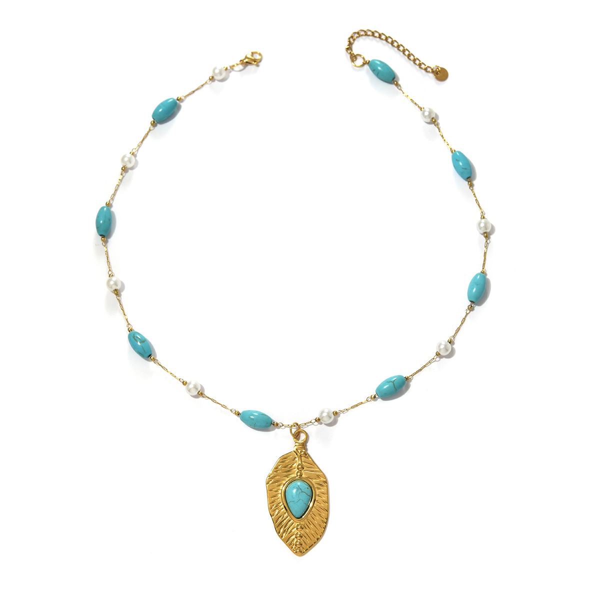 Nerezová ocel šperky náhrdelník, 304 Stainless Steel, s Syntetický Turquoise & Plastové Pearl, barva pozlacený, módní šperky, více barev na výběr, Prodáno By PC