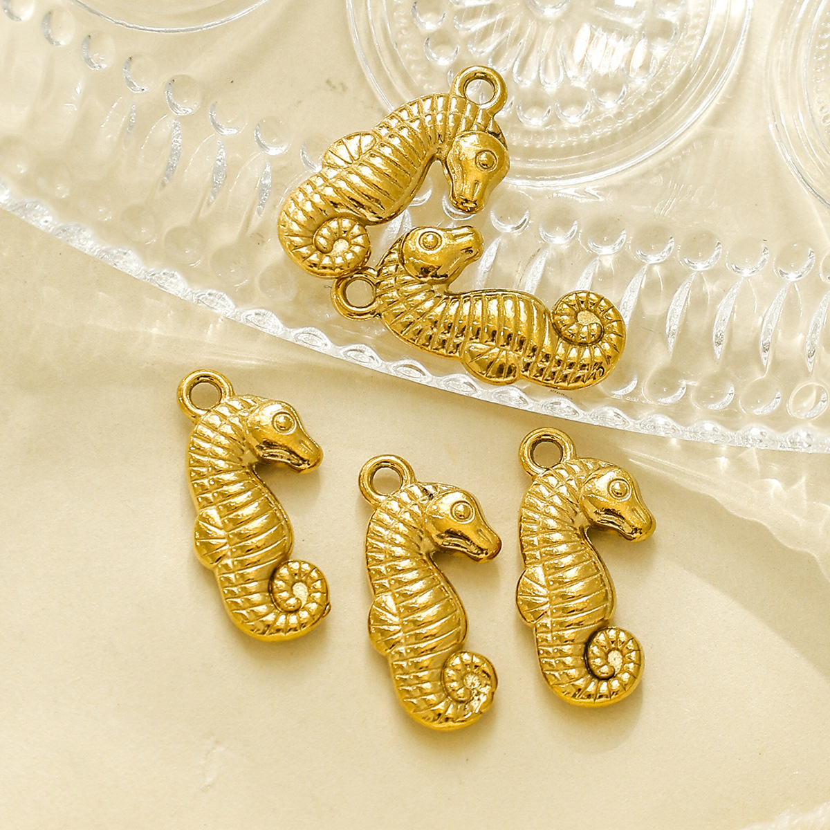 Nerezová ocel zvířat Přívěsky, 304 Stainless Steel, Seahorse, barva pozlacený, DIY, zlatý, 10PC/Bag, Prodáno By Bag