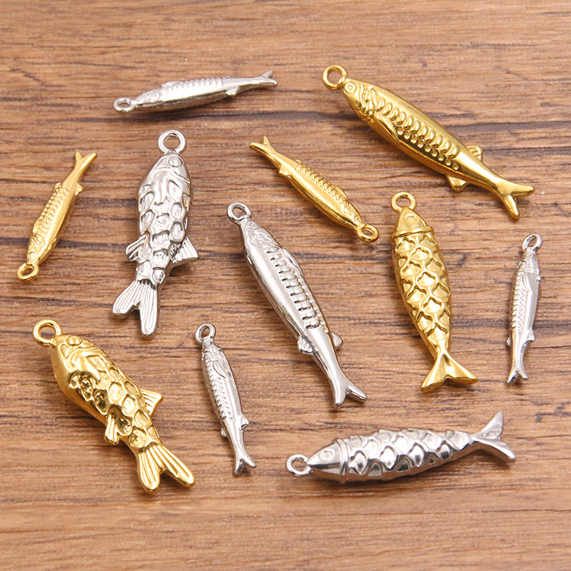 Nerezová ocel zvířat Přívěsky, 304 Stainless Steel, Ryba, DIY, více barev na výběr, 10PC/Bag, Prodáno By Bag