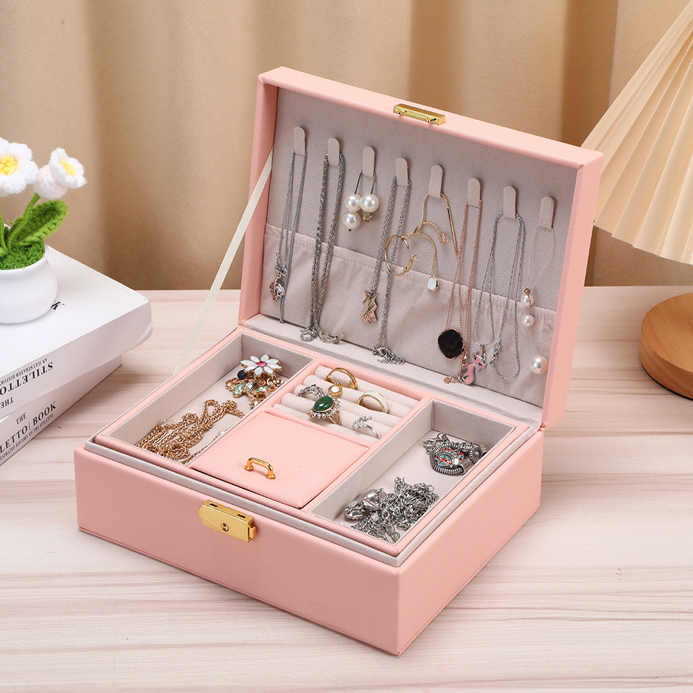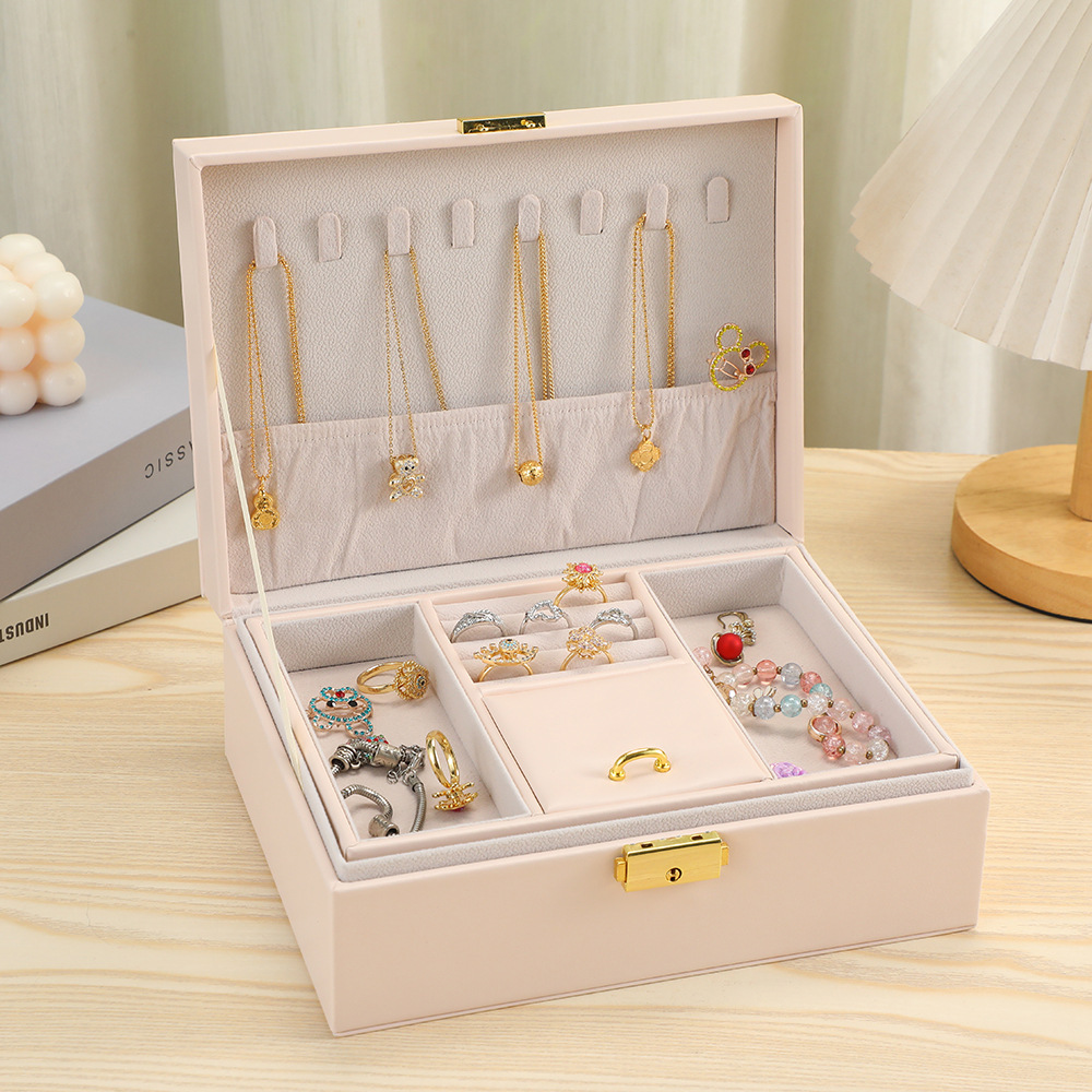 PU Multifunkční Šperkovnice, s Velveteen, Obdélník, Dvojitá vrstva & Prachotěsný, více barev na výběr, 230x170x90mm, Prodáno By PC