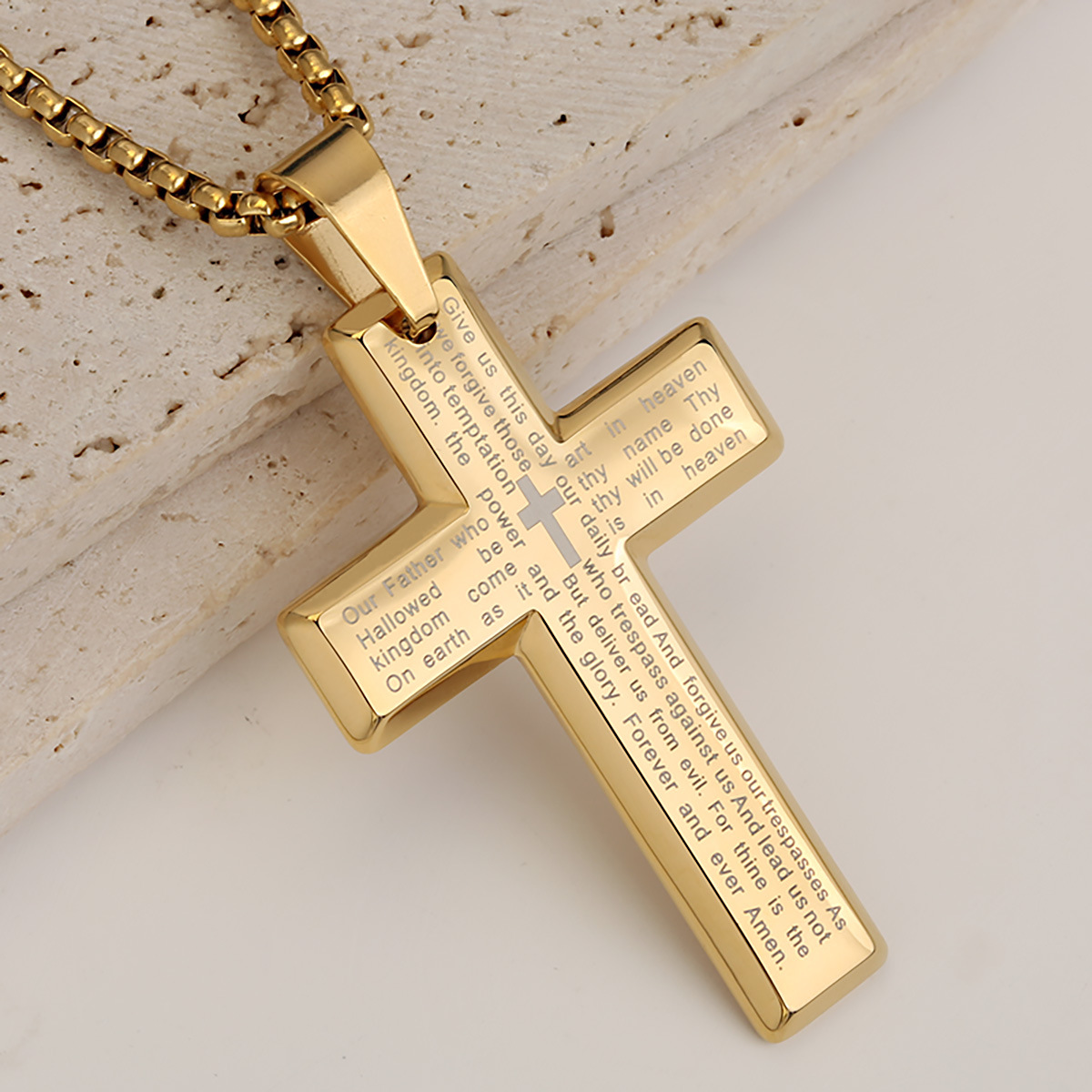 Nerezová ocel Cross Přívěsky, 304 Stainless Steel, s Titanium ocel, Kříž, barva pozlacený, módní šperky & s drahokamu, více barev na výběr, 38x6x68mm, Prodáno By PC