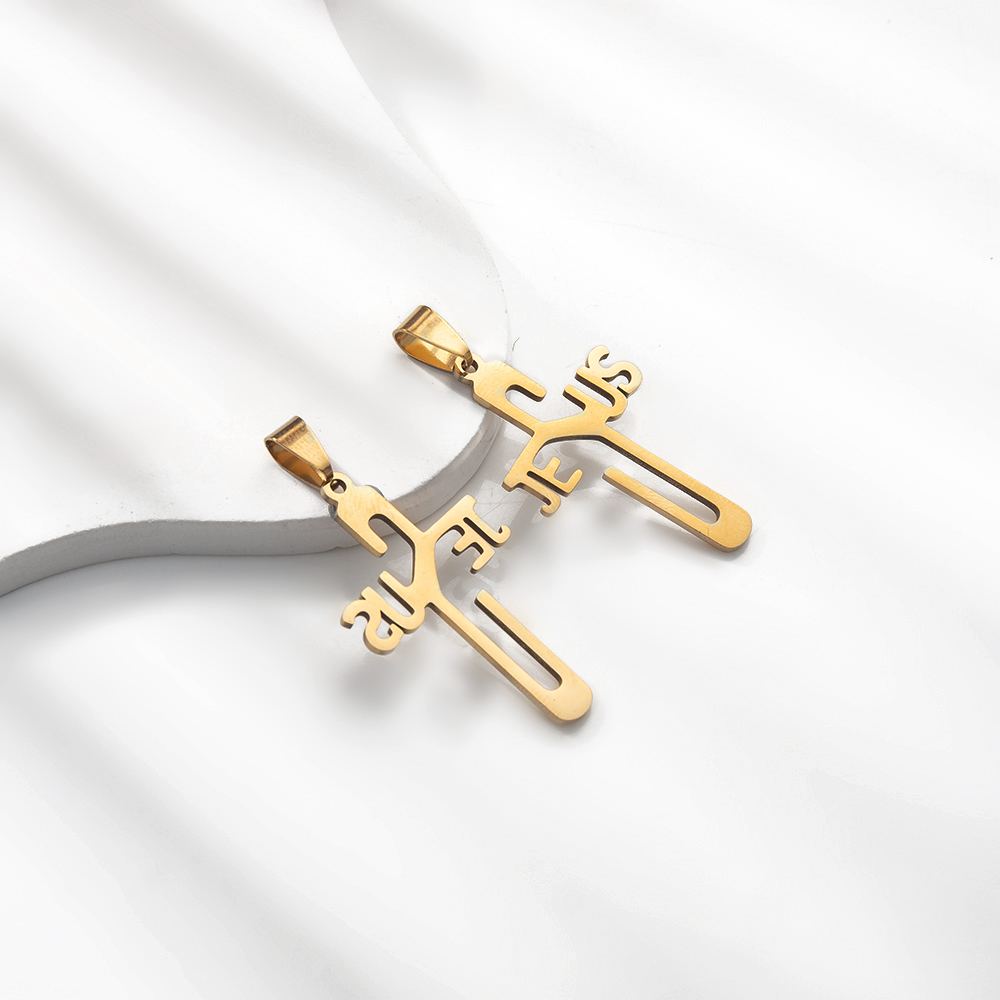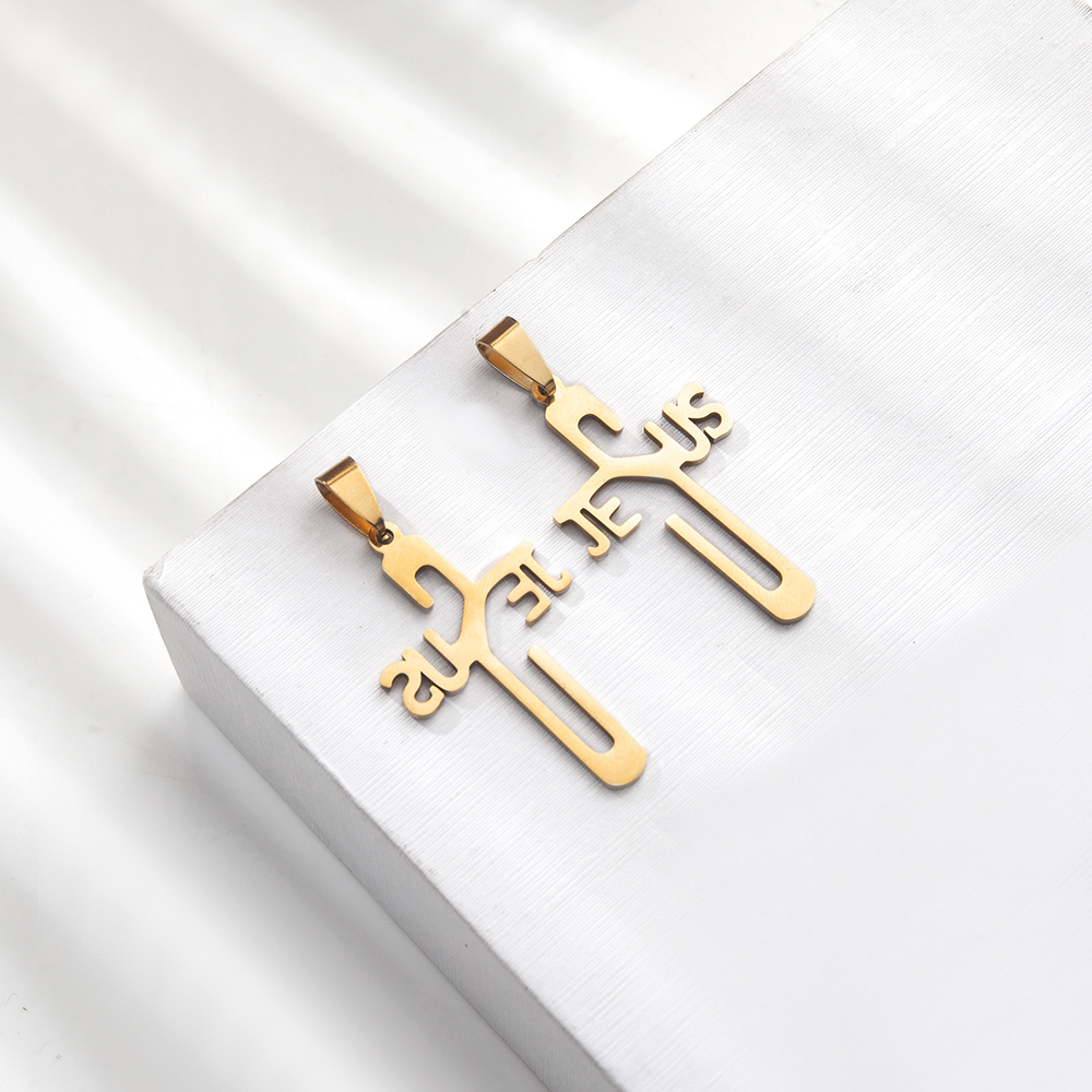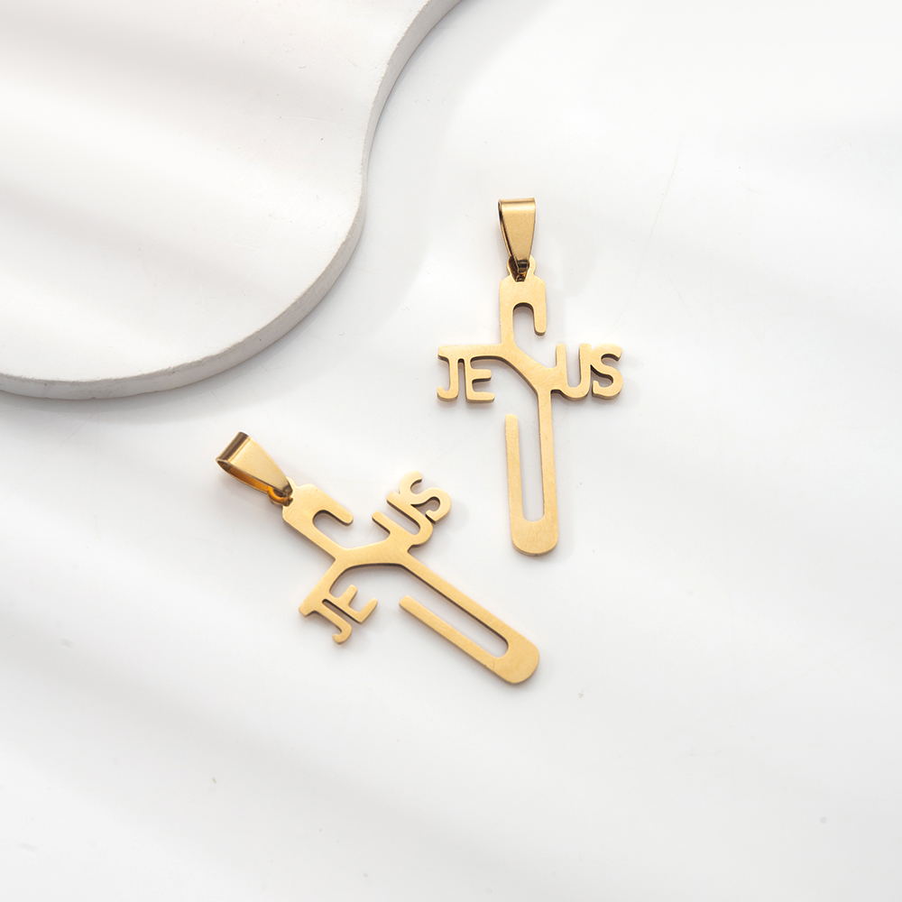Nerezová ocel Cross Přívěsky, 304 Stainless Steel, s Titanium ocel, Kříž, barva pozlacený, módní šperky & s drahokamu, více barev na výběr, 38x6x68mm, Prodáno By PC