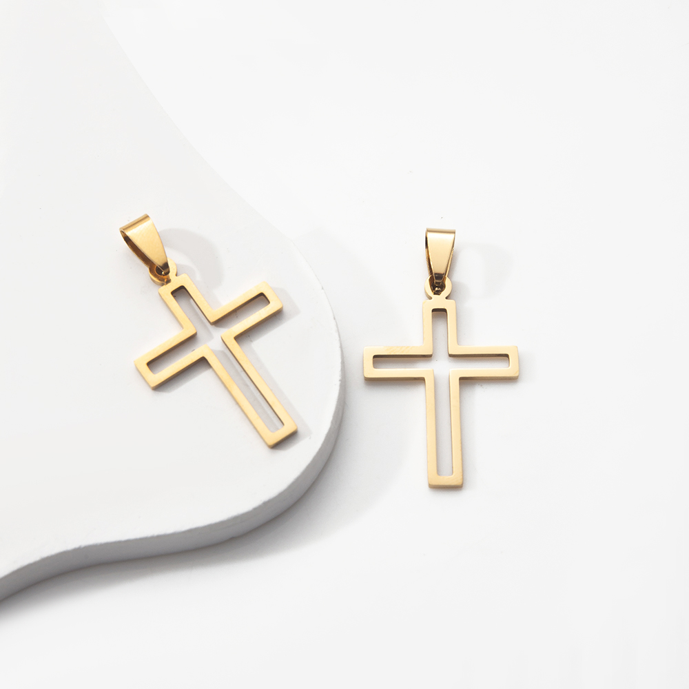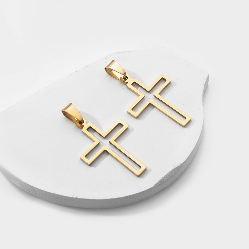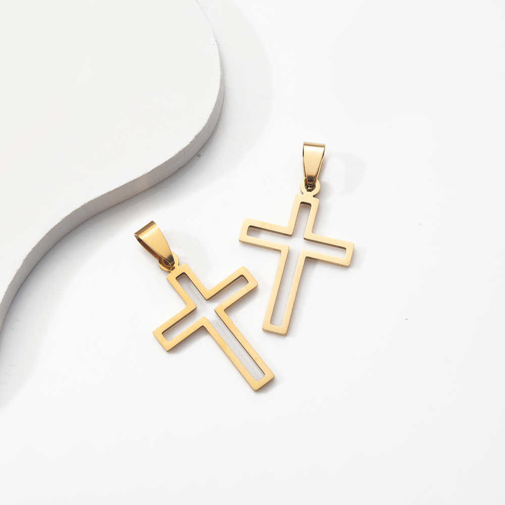Nerezová ocel Cross Přívěsky, 304 Stainless Steel, s Titanium ocel, Kříž, barva pozlacený, módní šperky & s drahokamu, více barev na výběr, 38x6x68mm, Prodáno By PC