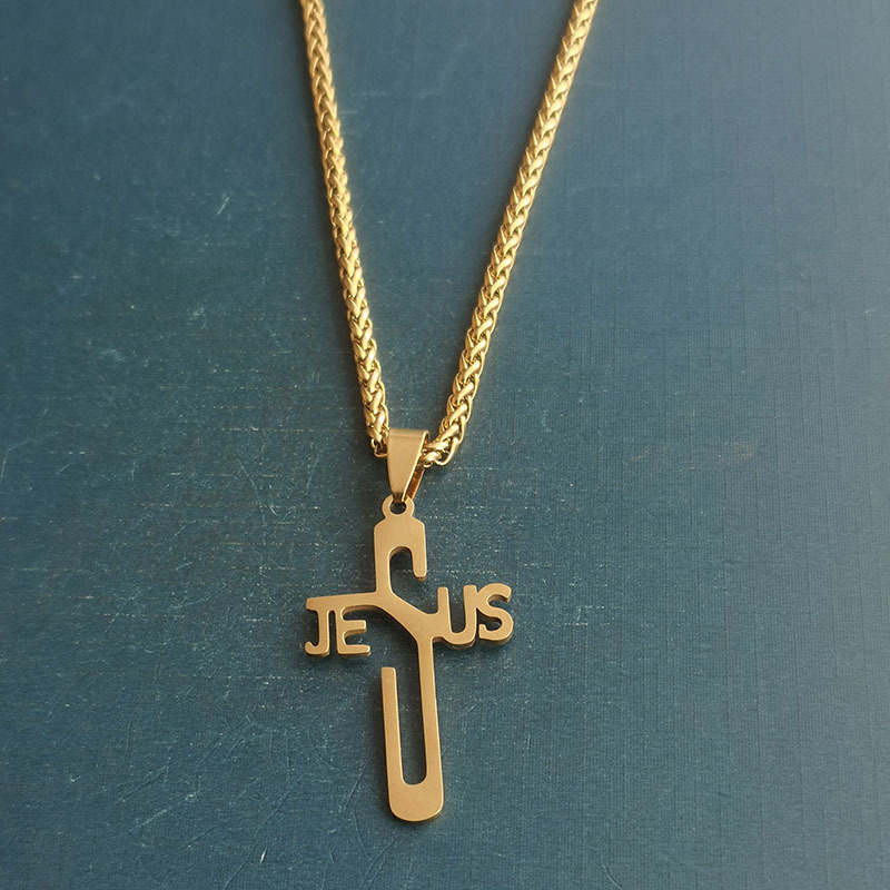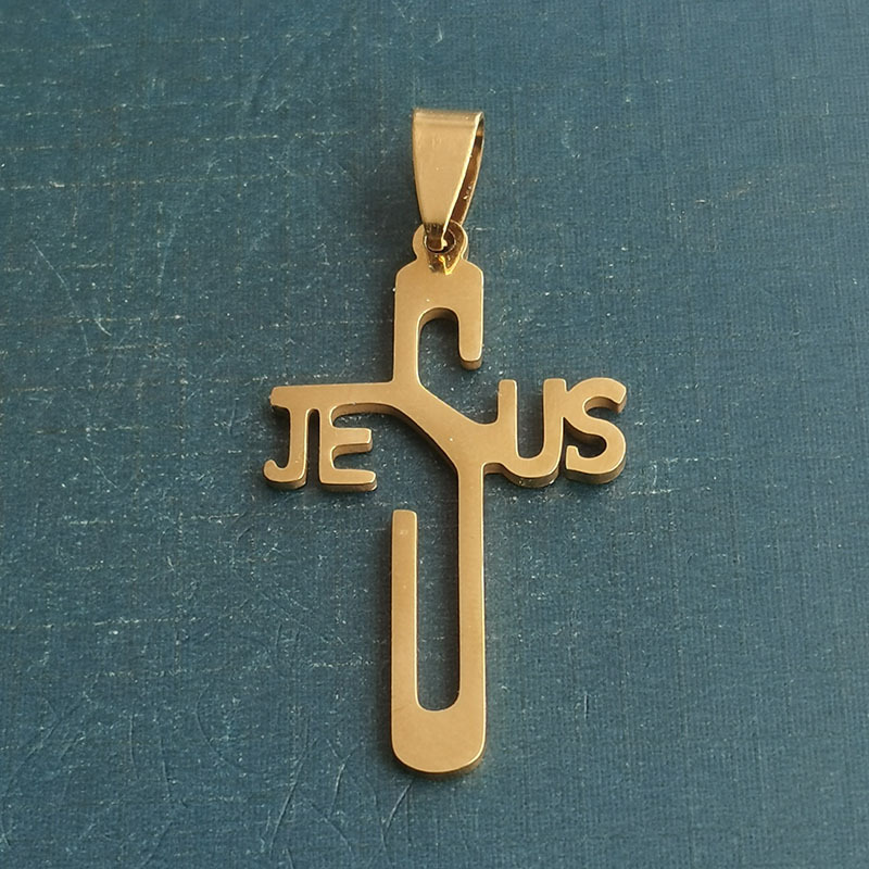 Nerezová ocel Cross Přívěsky, 304 Stainless Steel, s Titanium ocel, Kříž, barva pozlacený, módní šperky & s drahokamu, více barev na výběr, 38x6x68mm, Prodáno By PC