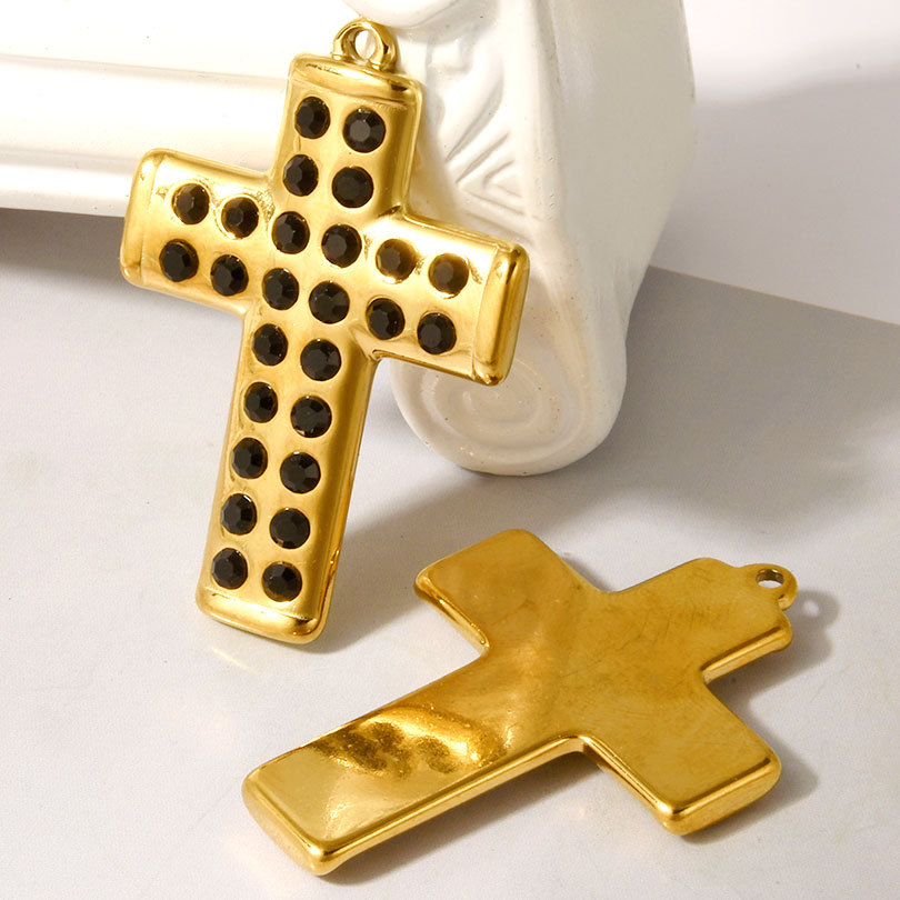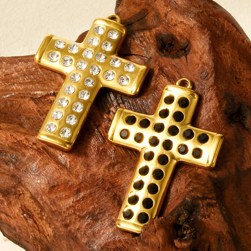 Nerezová ocel Cross Přívěsky, 304 Stainless Steel, s Titanium ocel, Kříž, barva pozlacený, módní šperky & s drahokamu, více barev na výběr, 38x6x68mm, Prodáno By PC