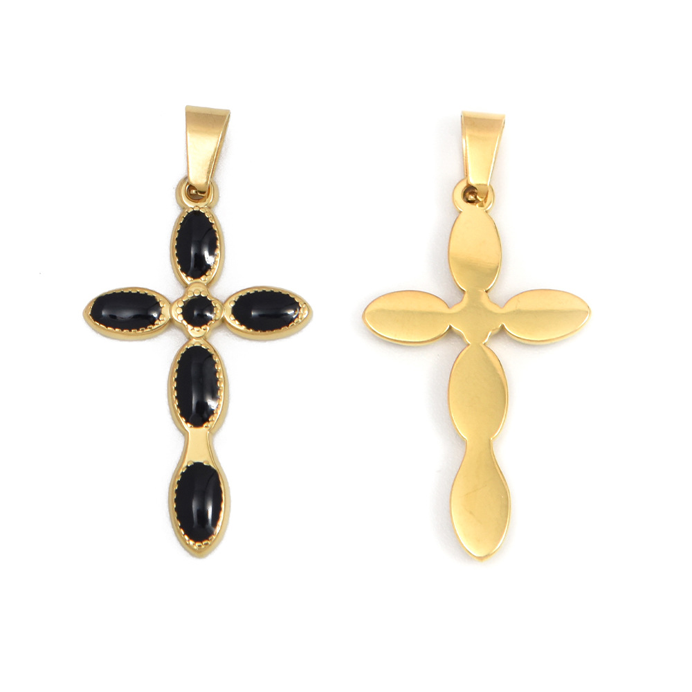 Nerezová ocel Cross Přívěsky, 304 Stainless Steel, s Titanium ocel, Kříž, barva pozlacený, módní šperky & s drahokamu, více barev na výběr, 38x6x68mm, Prodáno By PC