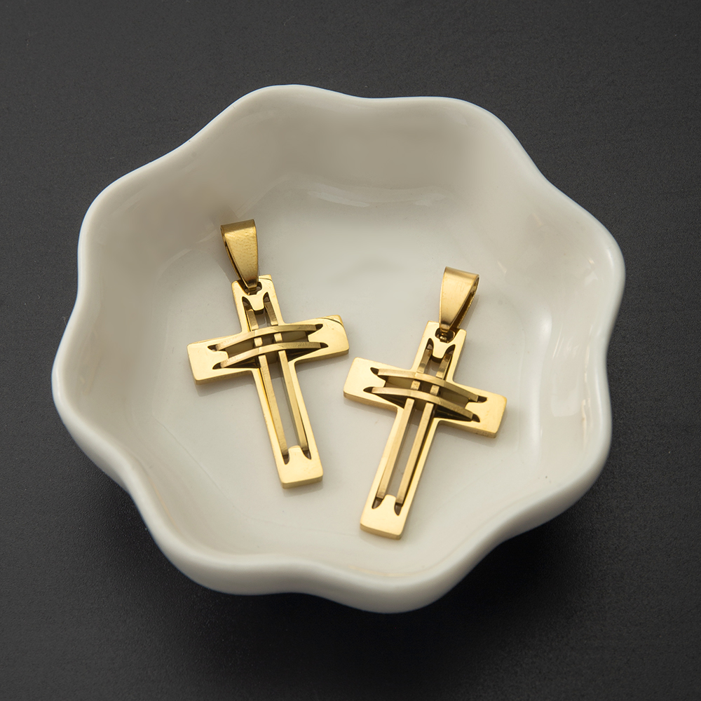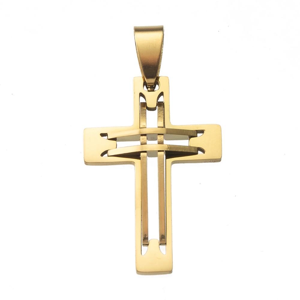 Nerezová ocel Cross Přívěsky, 304 Stainless Steel, s Titanium ocel, Kříž, barva pozlacený, módní šperky & s drahokamu, více barev na výběr, 38x6x68mm, Prodáno By PC