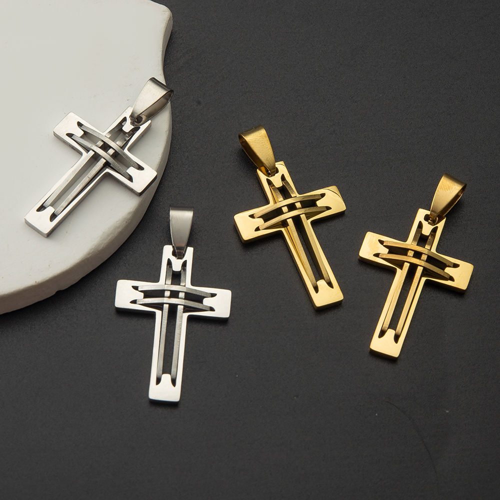 Nerezová ocel Cross Přívěsky, 304 Stainless Steel, Kříž, DIY, Původní barva, 26.40x48x5.80mm, Prodáno By PC