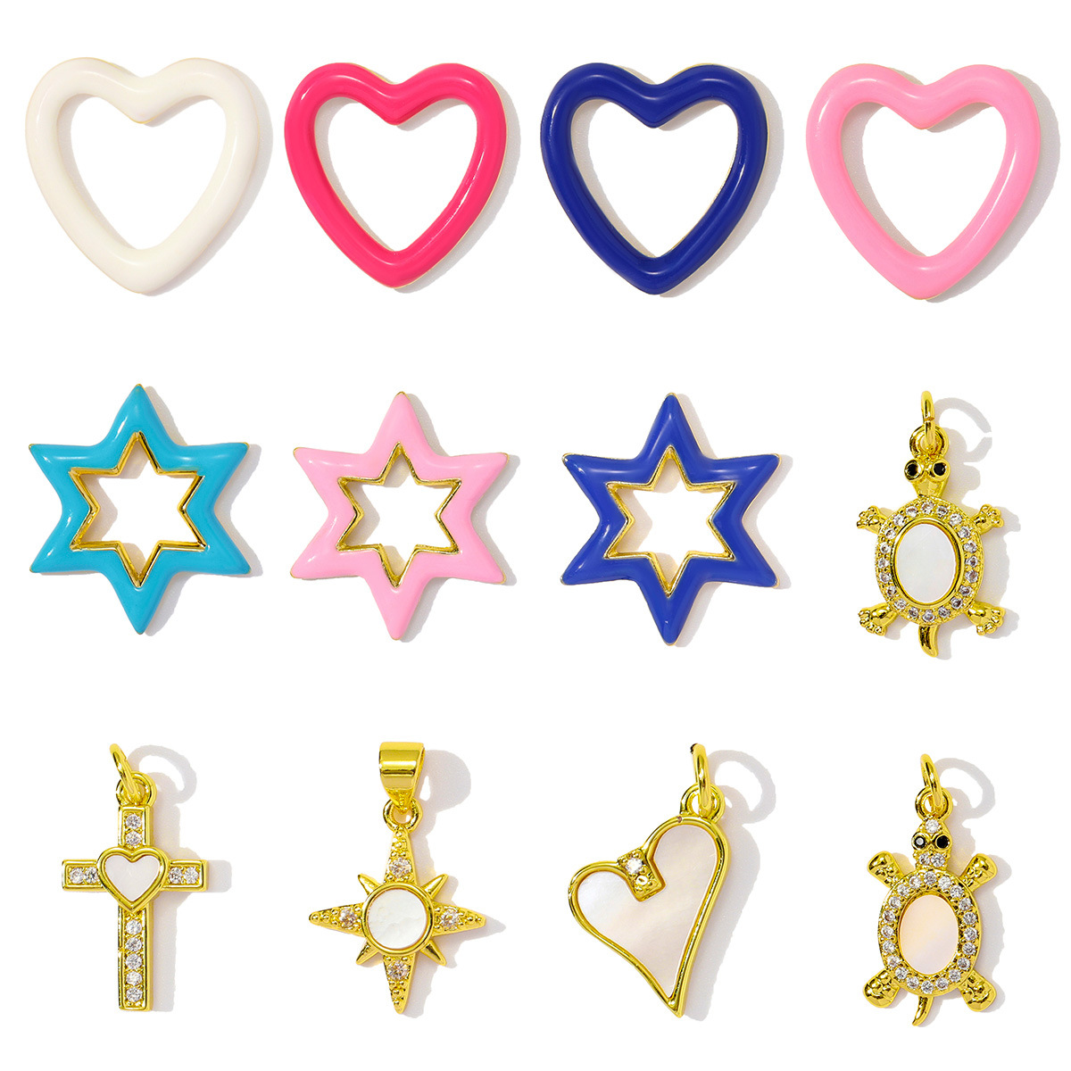 Šatonové mosaz Přívěsky, á, DIY & micro vydláždit kubické zirkony & smalt & s drahokamu, více barev na výběr, nikl, olovo a kadmium zdarma, 3PC/Bag, Prodáno By Bag