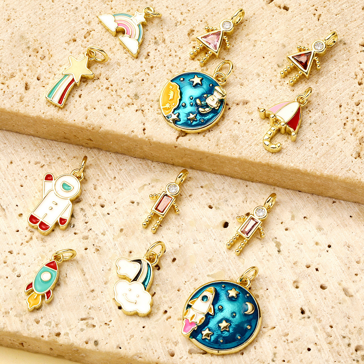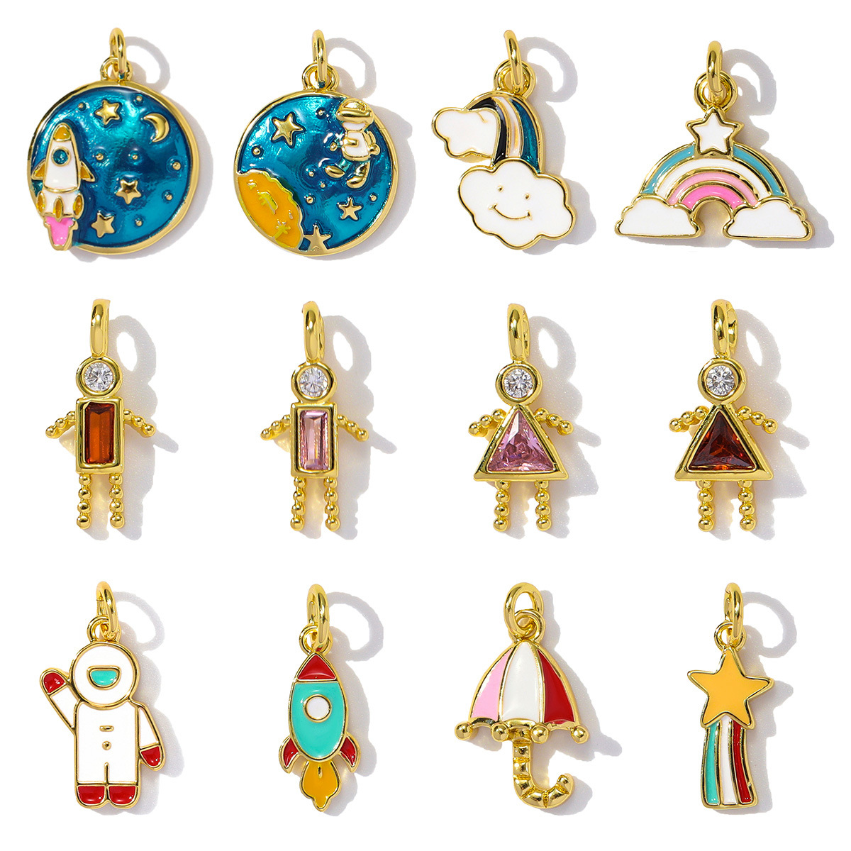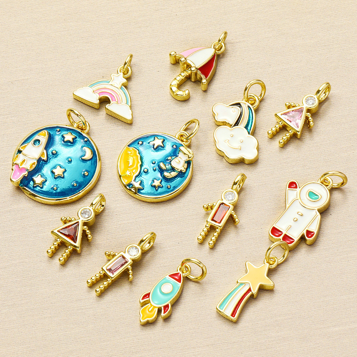 Šatonové mosaz Přívěsky, á, DIY & micro vydláždit kubické zirkony & smalt & s drahokamu, více barev na výběr, nikl, olovo a kadmium zdarma, 3PC/Bag, Prodáno By Bag