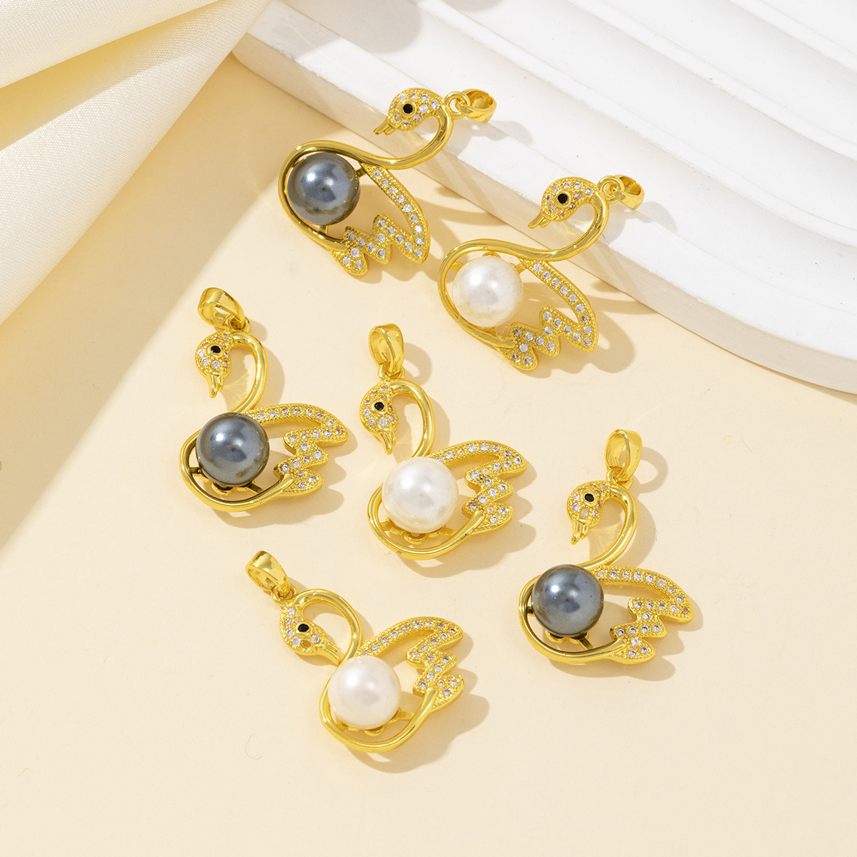 Šatonové mosaz Přívěsky, s Shell Pearl, Labuť, á, DIY & s drahokamu, více barev na výběr, Prodáno By PC