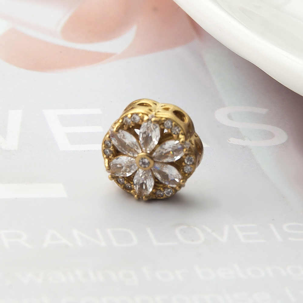 Šatonové Mosazné korálky, Mosaz, Květina, DIY & s drahokamu, zlatý, nikl, olovo a kadmium zdarma, 11.80x5.80x11.30mm, Vnitřní průměr:Cca 1.2mm, Prodáno By PC