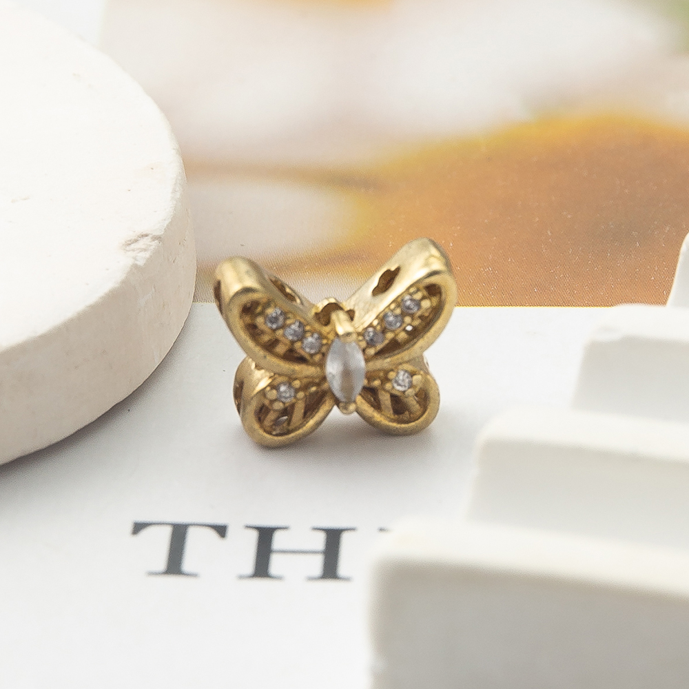 Šatonové Mosazné korálky, Mosaz, Motýl, DIY & s drahokamu, zlatý, nikl, olovo a kadmium zdarma, 12.10x5.40x9.75mm, Vnitřní průměr:Cca 1.2mm, Prodáno By PC