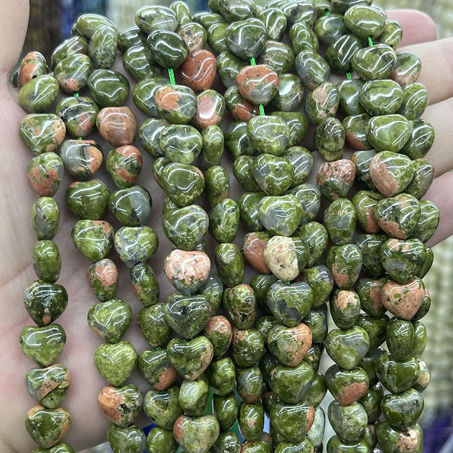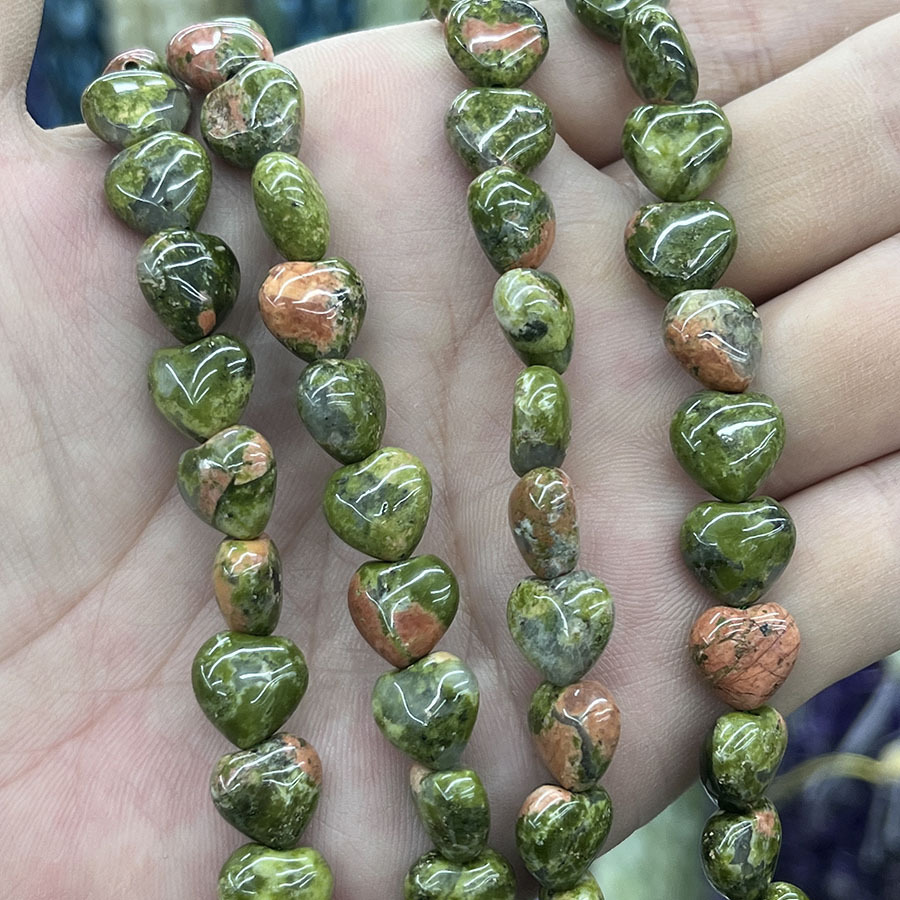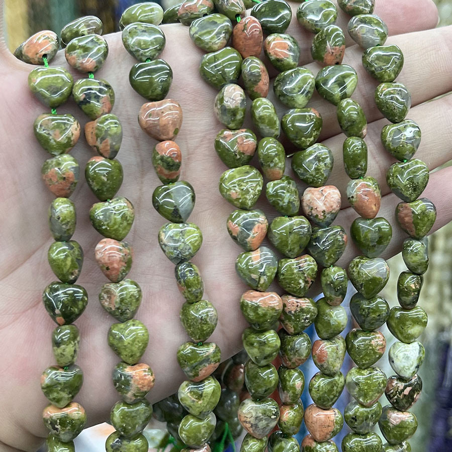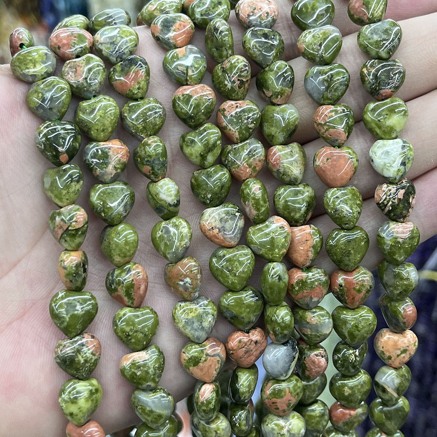 Unakite Korálky, Srdce, DIY, zelený, 10mm, Prodáno za Cca 38 cm Strand