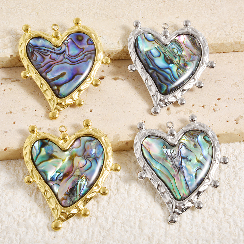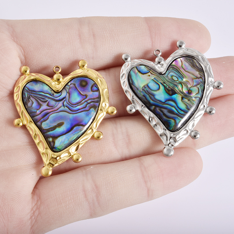Přírodní Abalone Shell Přívěsky, 304 Stainless Steel, s Abalone Shell, Srdce, á, DIY, více barev na výběr, 36x44mm, 10PC/Bag, Prodáno By Bag
