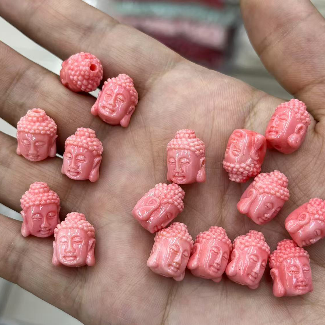 1:11*15mm single-sided buddha head/off-white2:11*15mm single-sided buddha head/pink3:11*14mm double-sided buddha head4:11*16mm buddha