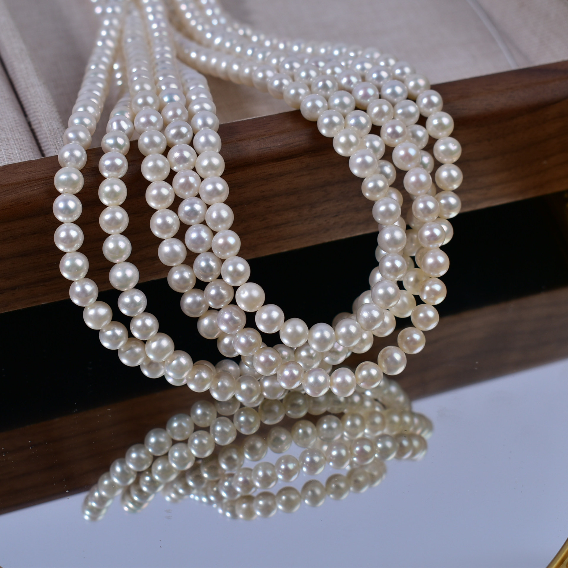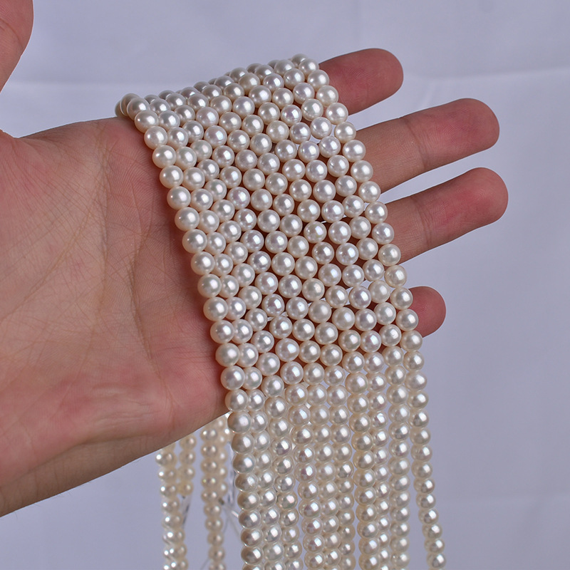 Přírodní sladkovodní perly perlí, Sladkovodní Pearl, Mírně kulaté, DIY, bílý, 5-6mm, Prodáno za 40 cm Strand