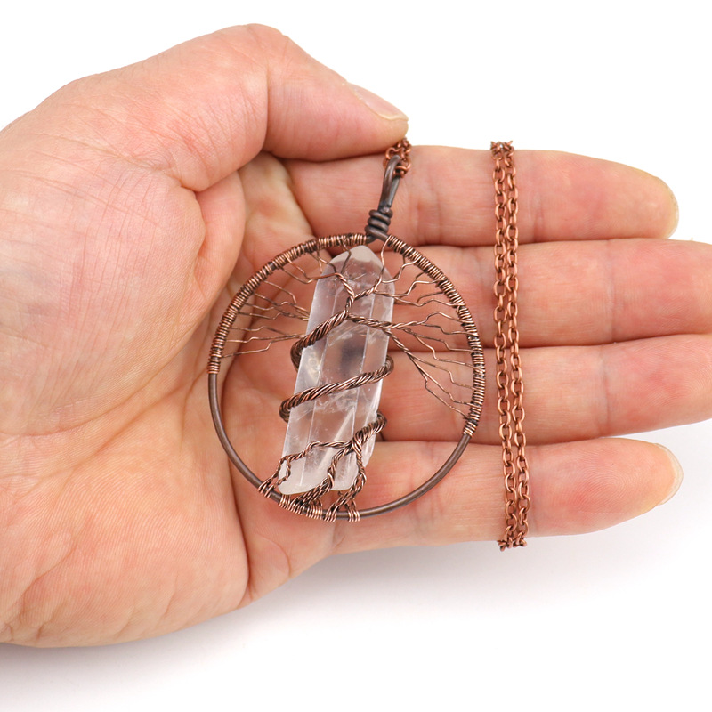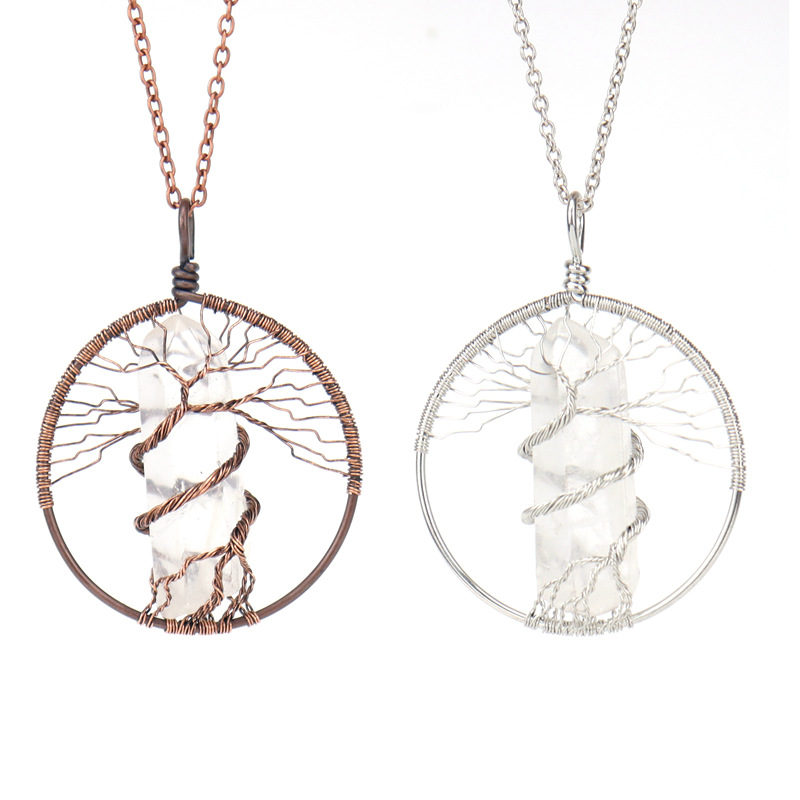 Quartz náhrdelník, Přírodní Quartz, s mosazný drát & Mosaz, ruční práce, módní šperky & pro ženy & dutý, více barev na výběr, Prodáno By PC