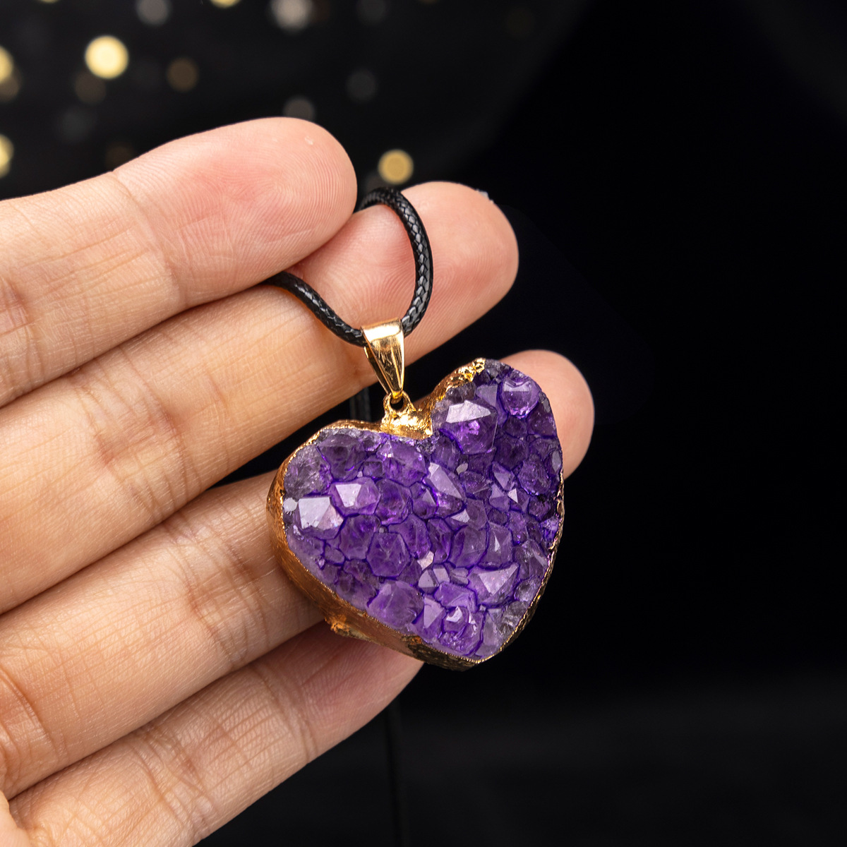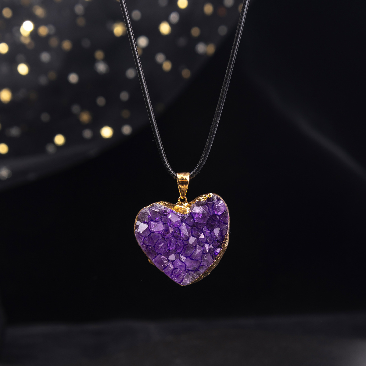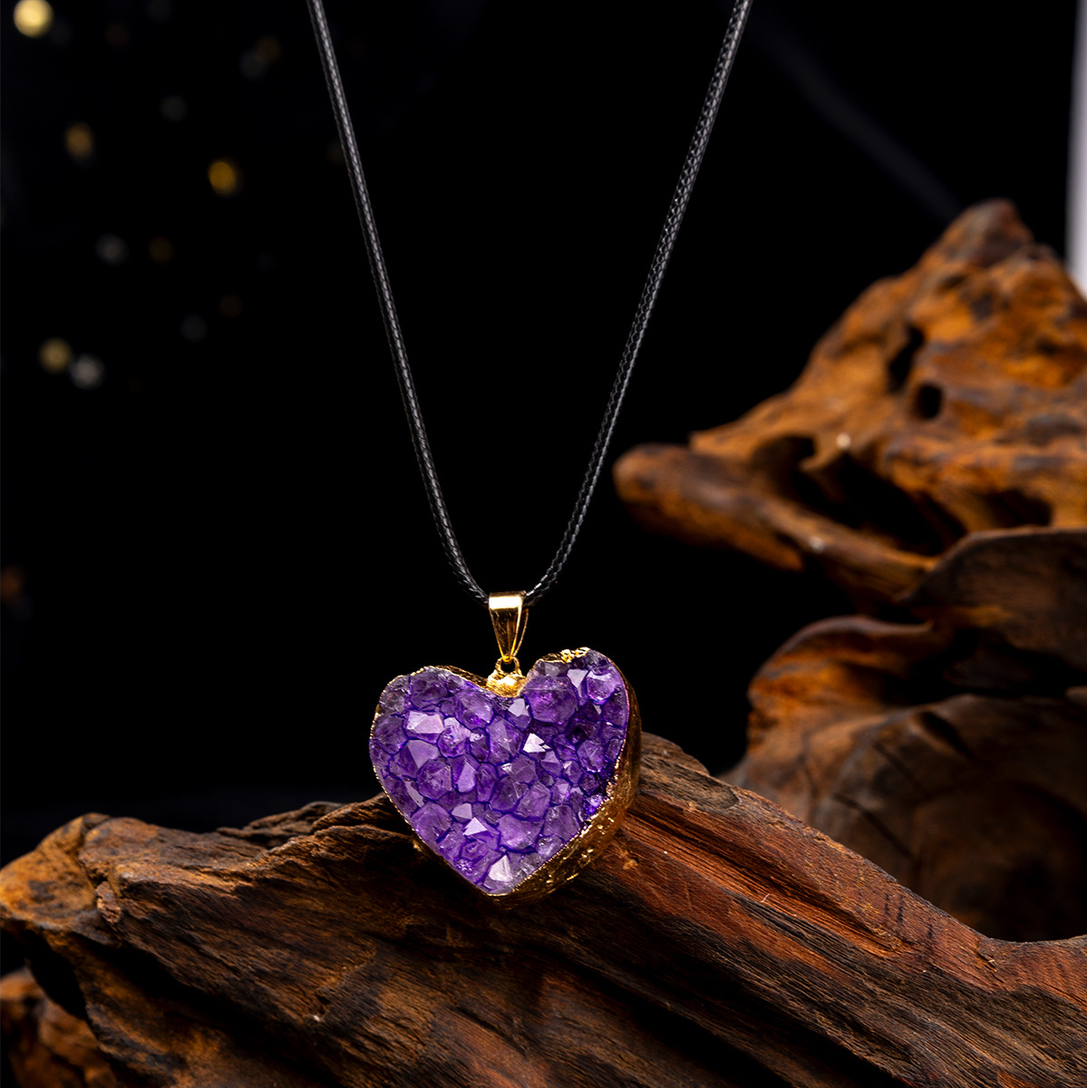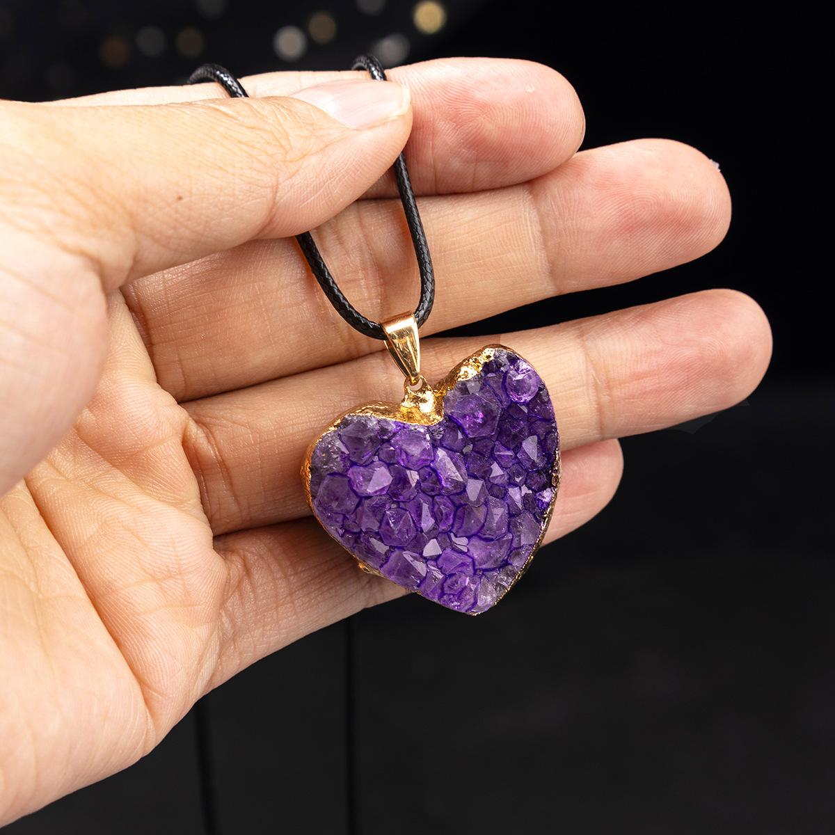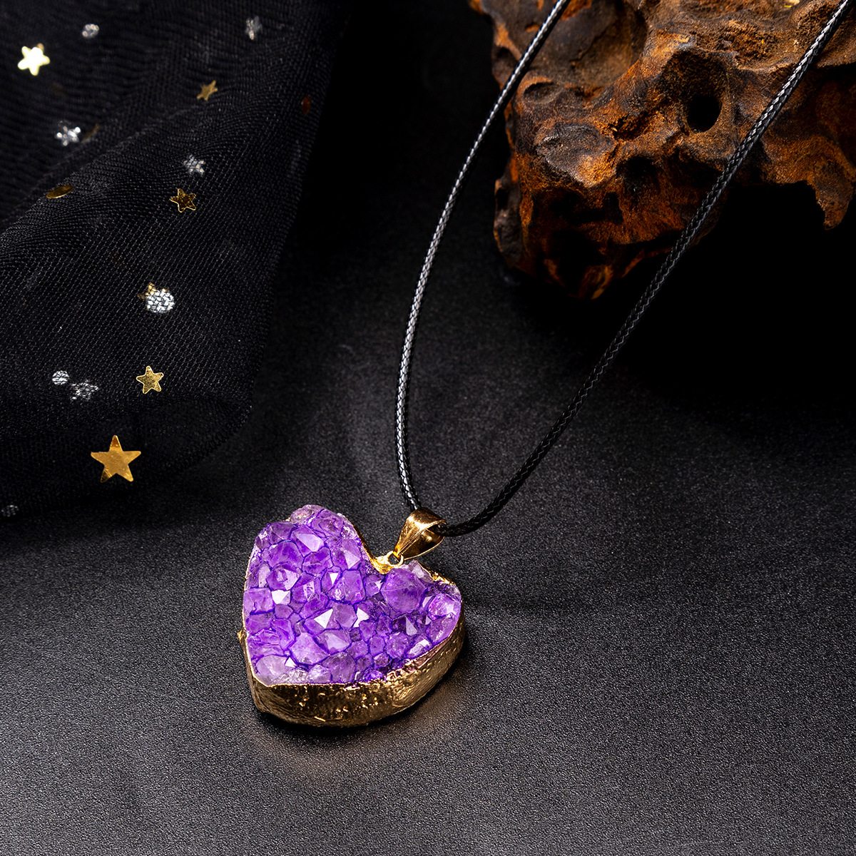 Quartz náhrdelník, Ametyst, s kožená šňůra & 304 Stainless Steel, barva pozlacený, módní šperky & unisex, Prodáno By PC