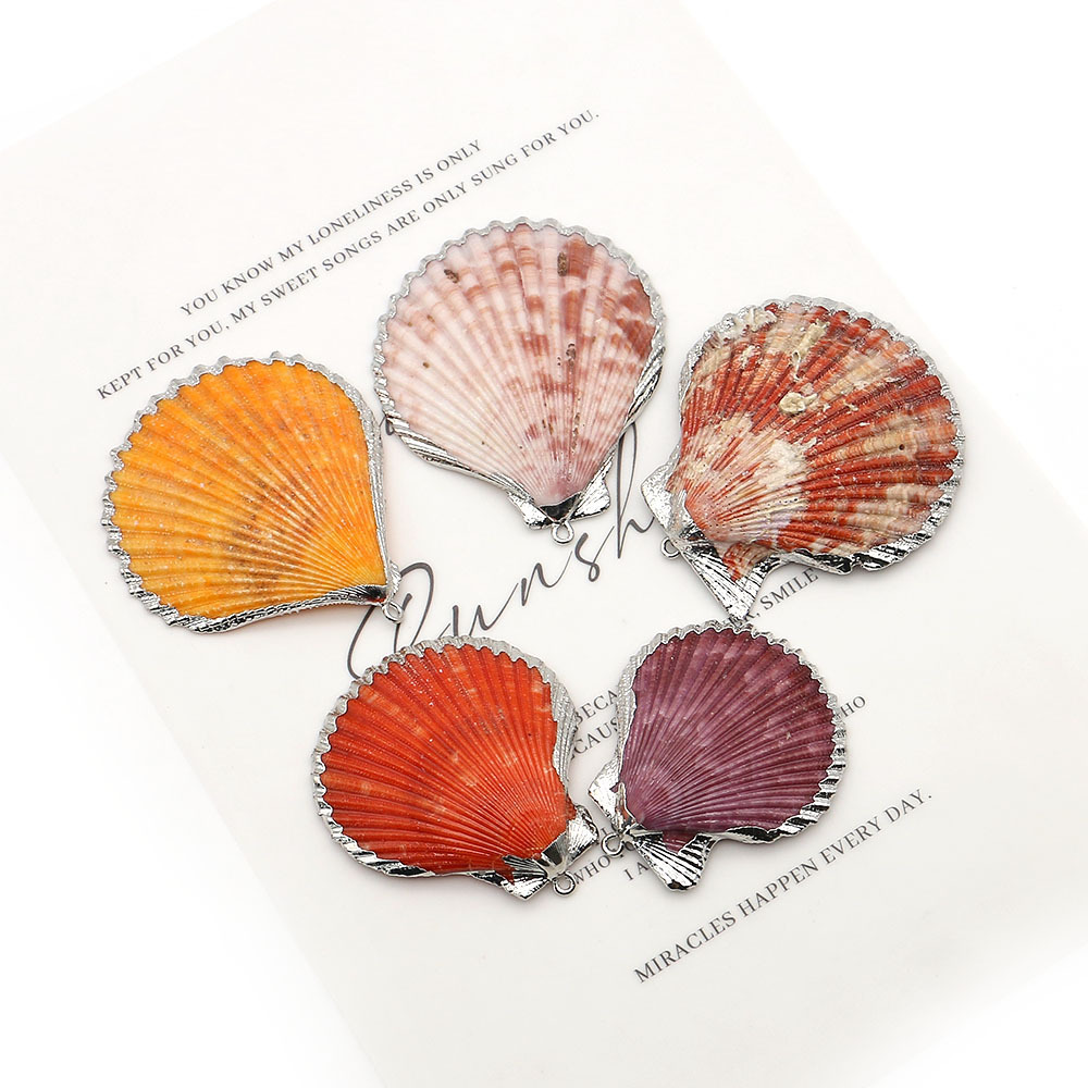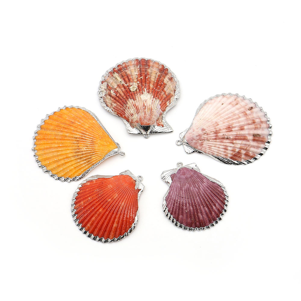 Shell Přívěsky, Skořápka, s Železo, Skořápka, barva stříbrná á, DIY, smíšené barvy, 39x45mm-51x56mm, Prodáno By PC