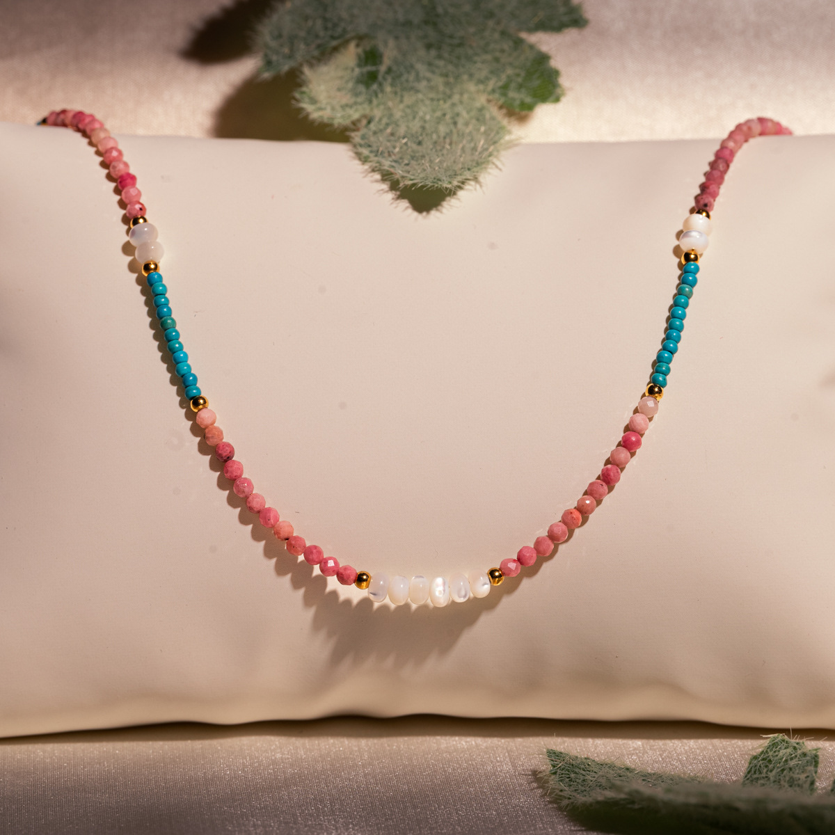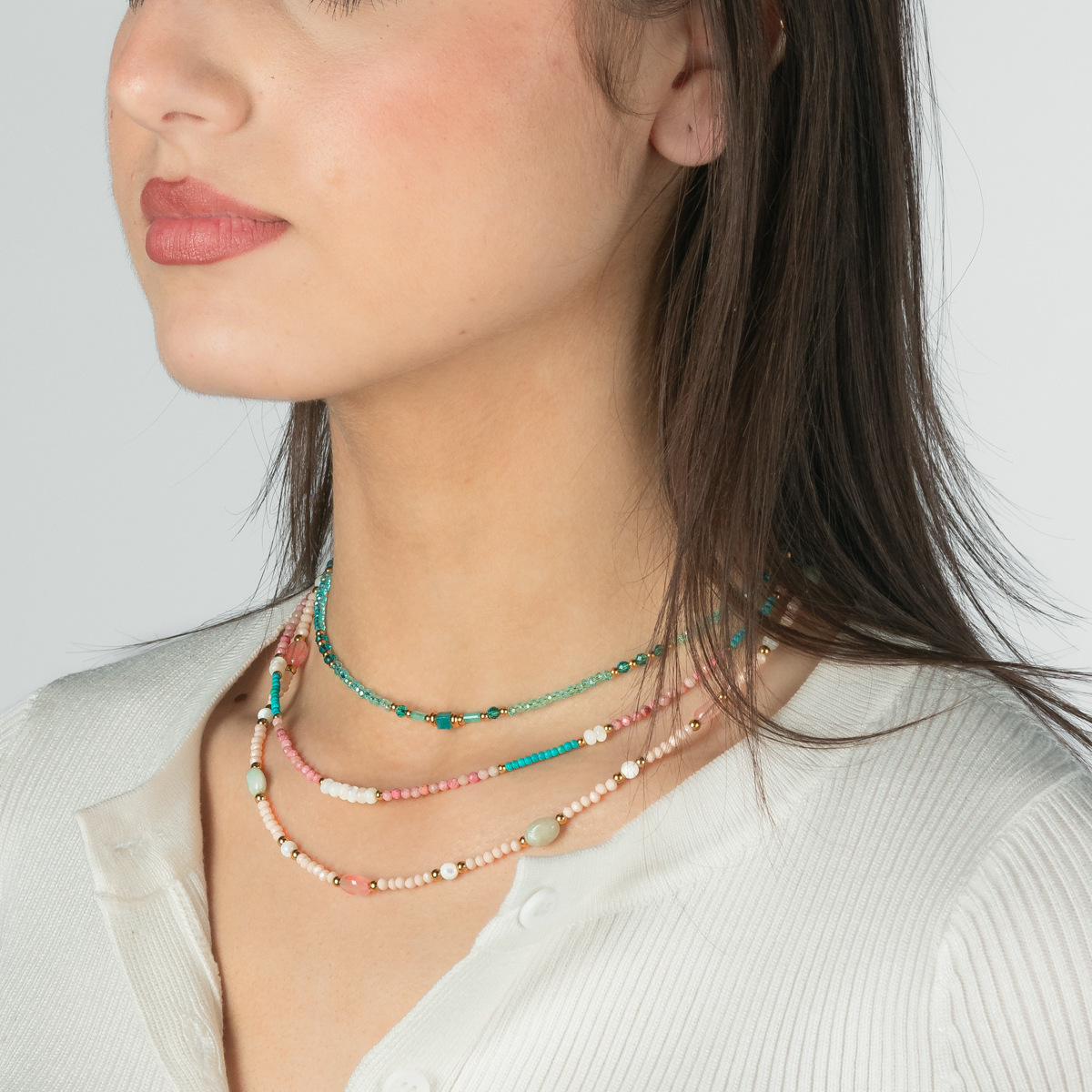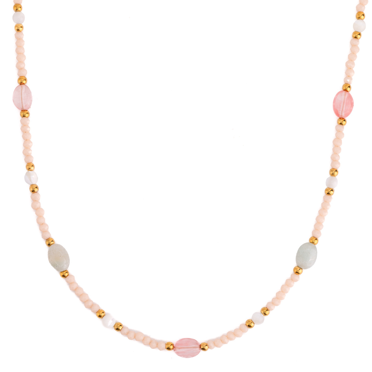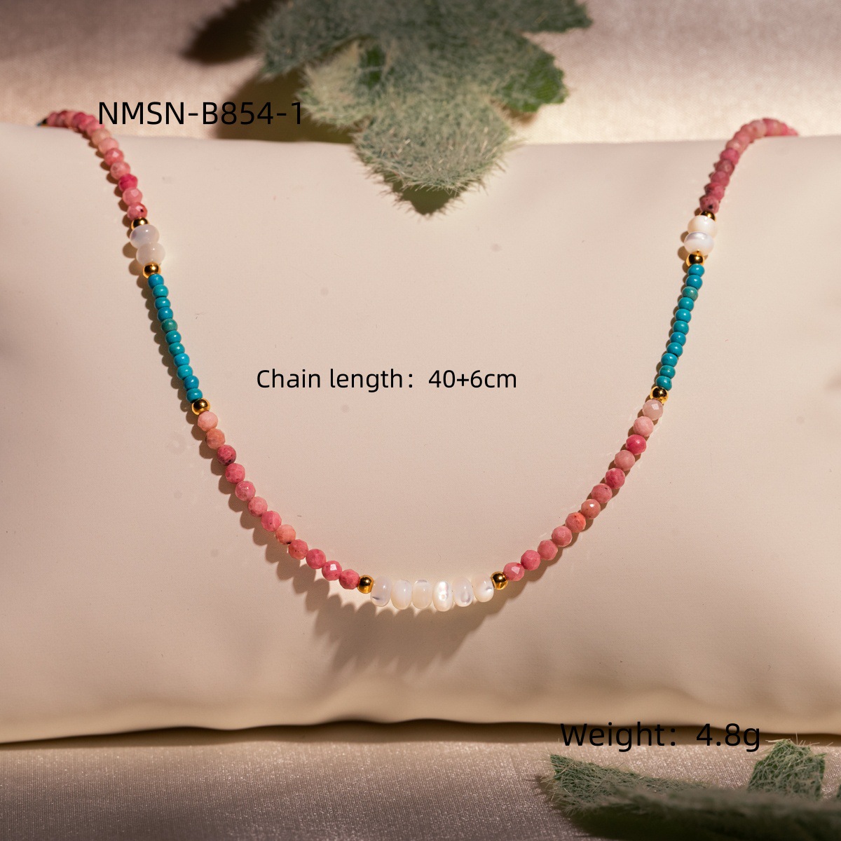 Skleněné perličky náhrdelník, 304 Stainless Steel, s Seedbead & Přírodní kámen, 18K pozlacené, módní šperky & různé styly pro výběr & pro ženy, multi-barevný, Prodáno By PC