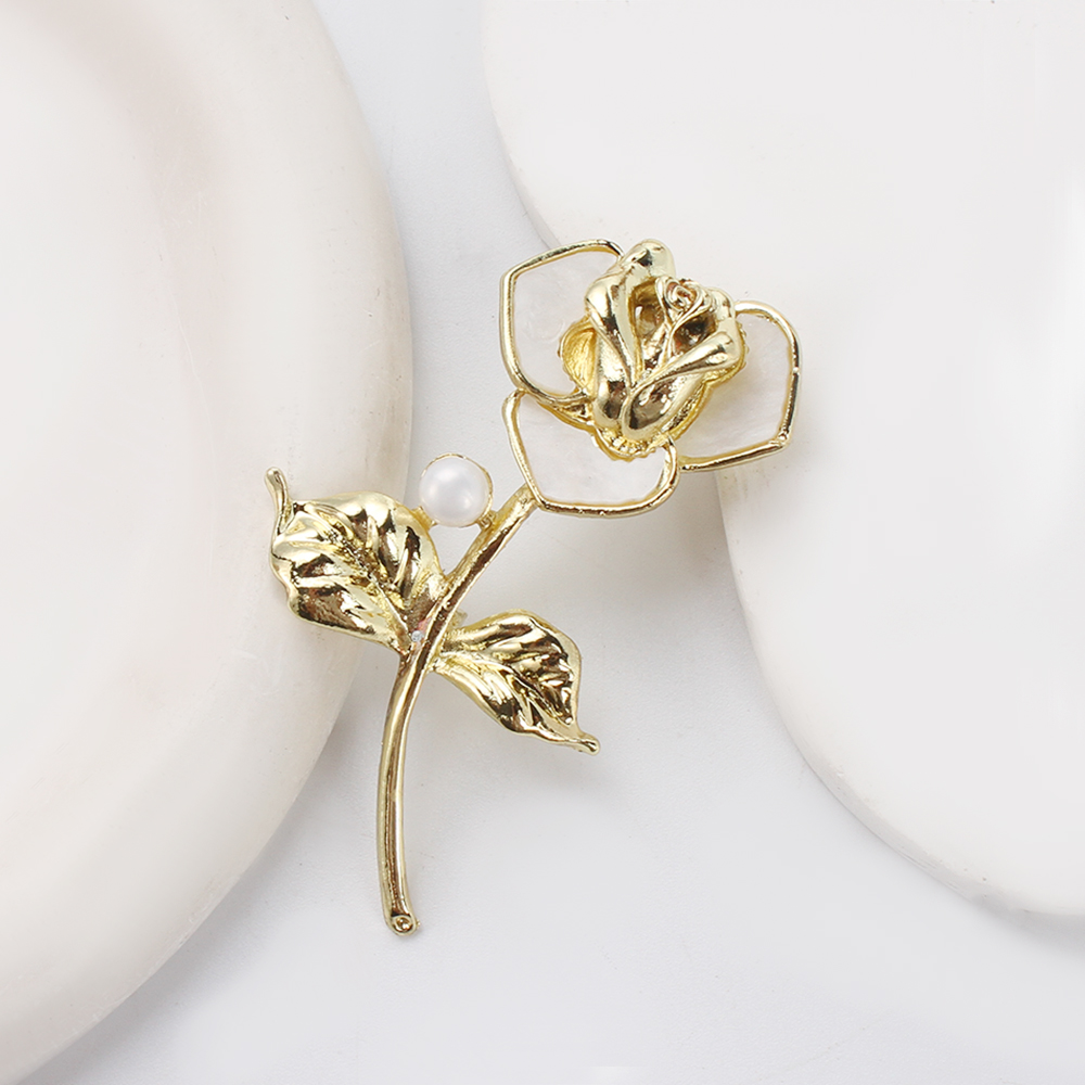Sladkovodní Pearl Brož, Zinek, s White Shell & Sladkovodní Pearl, barva pozlacený, módní šperky, více barev na výběr, 26.68x14.73x63.39mm, Prodáno By PC