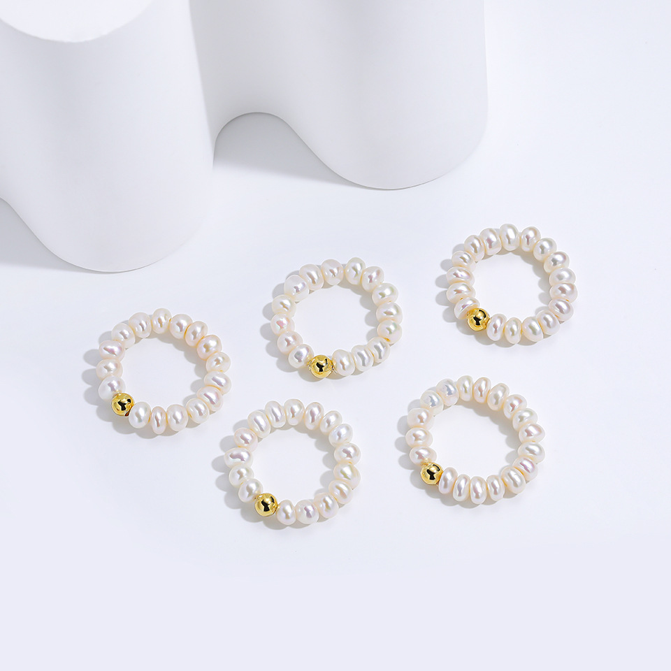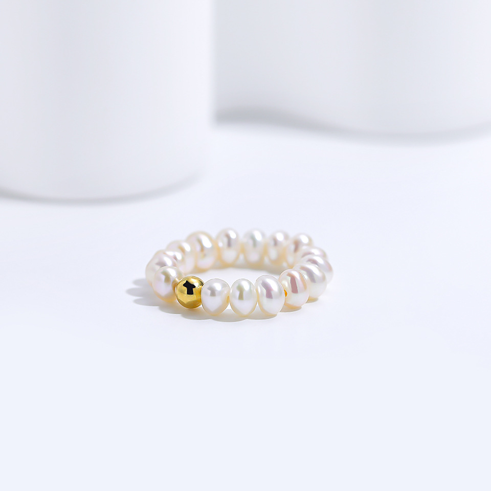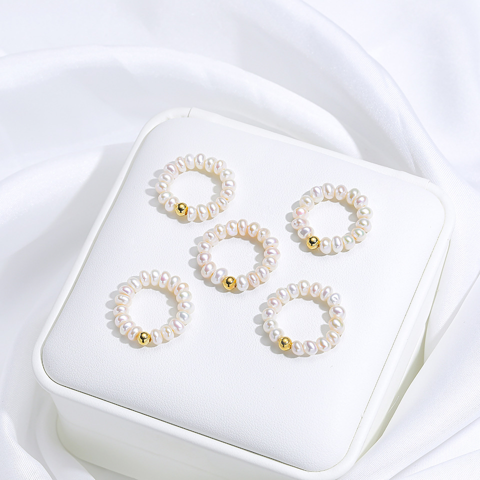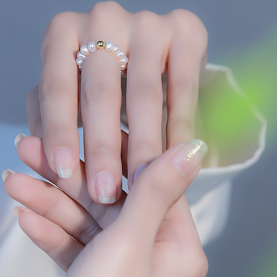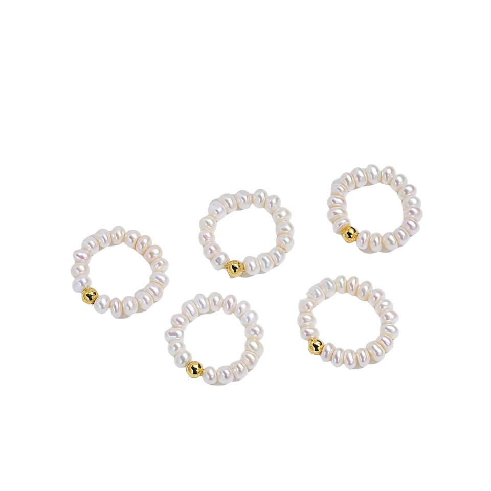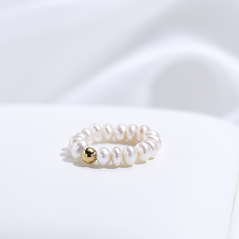 Sladkovodní Pearl prst prsten, s Mosaz, Flat Round, barva pozlacený, módní šperky, více barev na výběr, nikl, olovo a kadmium zdarma, 3-4mm, Prodáno By PC
