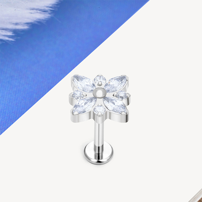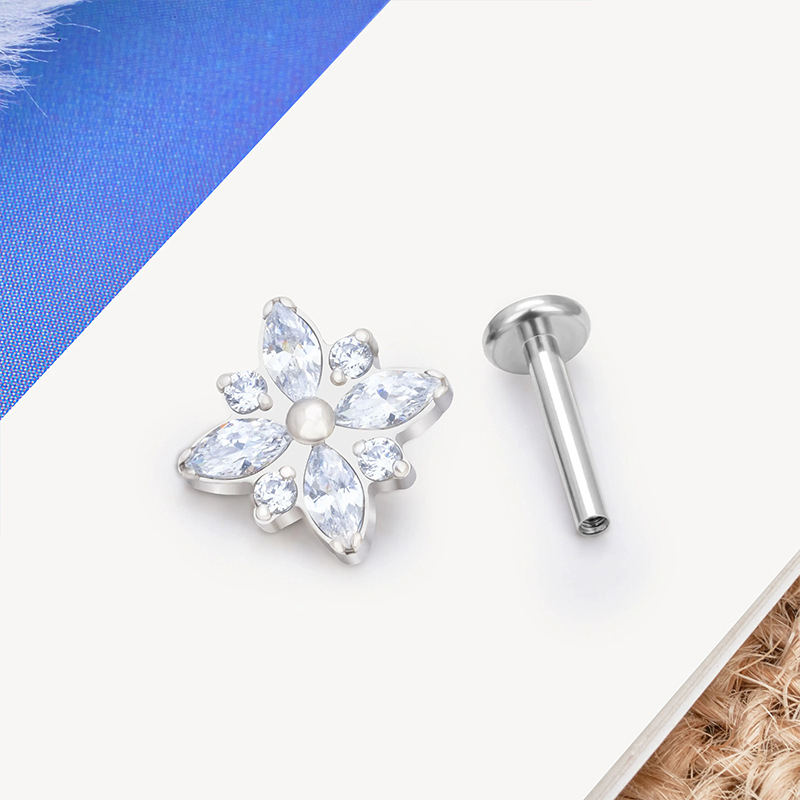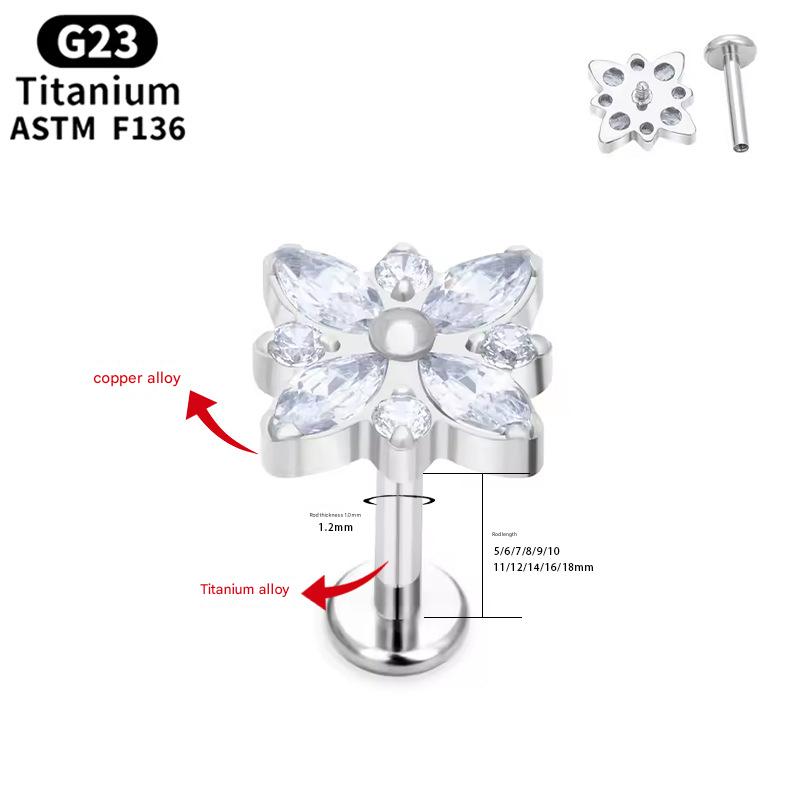 Titanium Alloy s Slitina mědi, Květina, lesklý, unisex & různé velikosti pro výběr & micro vydláždit kubické zirkony, více barev na výběr, Prodáno By PC