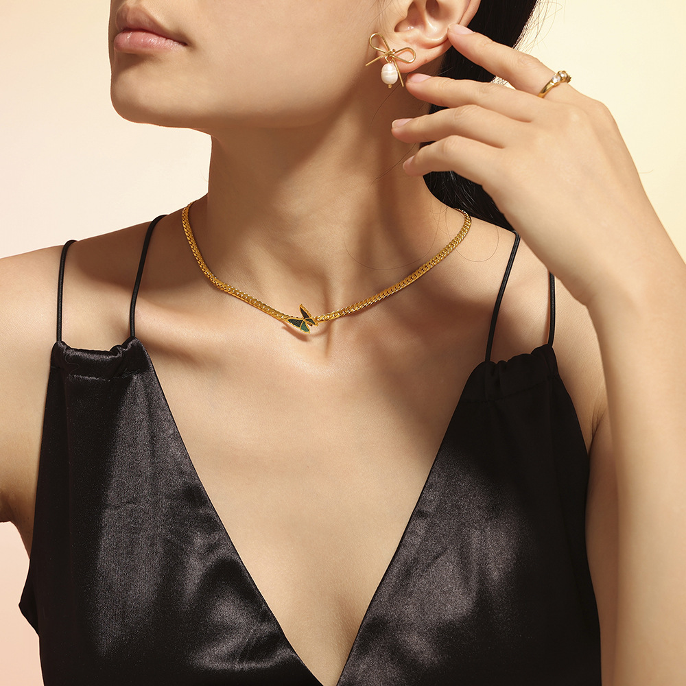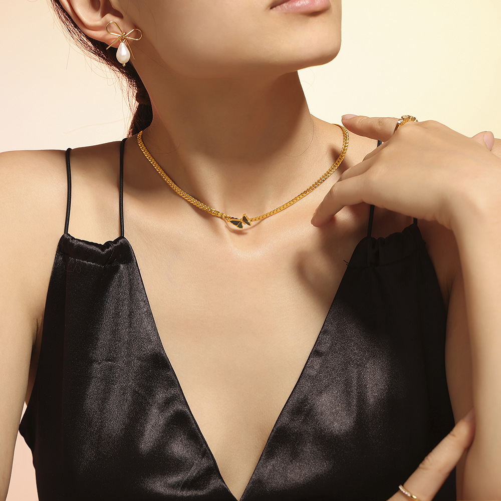 Titanium ocel Náhrdelník, módní šperky & pro ženy & smalt, zlatý, Prodáno By PC