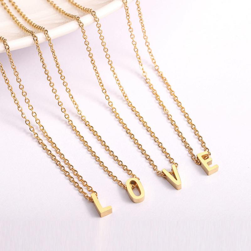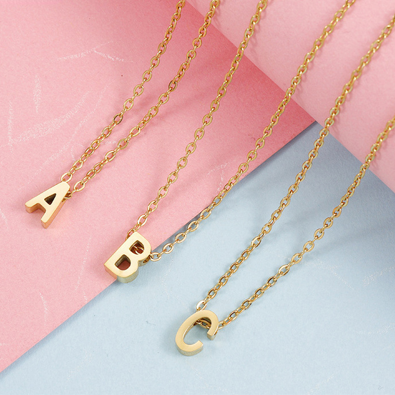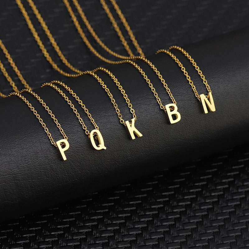 Titanium ocel Náhrdelník, s 2inch extender řetězce, Abecední písmeno, barva pozlacený, unisex & různé styly pro výběr, Délka Cca 15.7 inch, Prodáno By PC