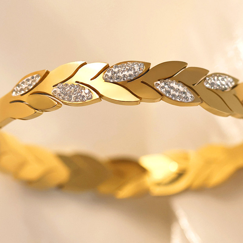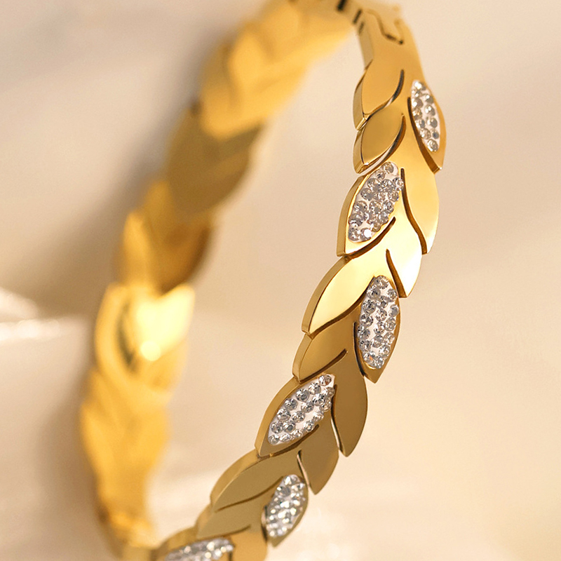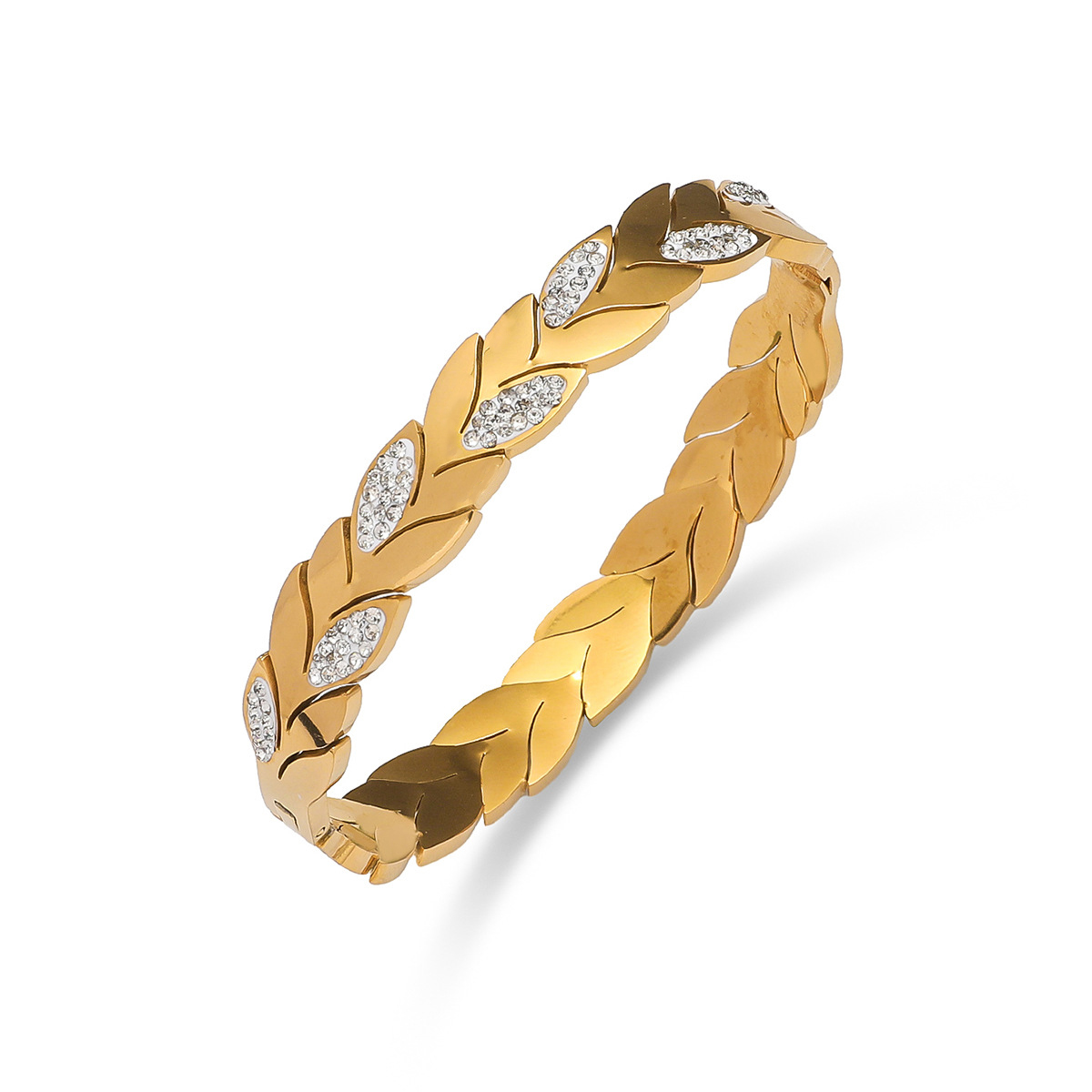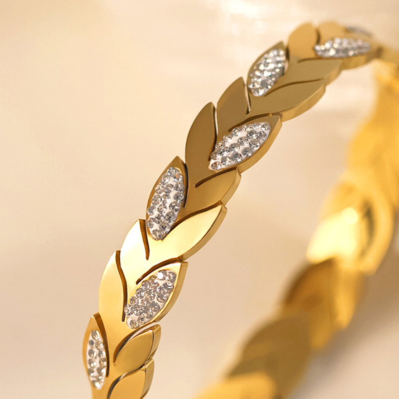 Titanium ocel Náramek, List, barva pozlacený, pro ženy & s drahokamu, Vnitřní průměr:Cca 60mm, Prodáno By PC