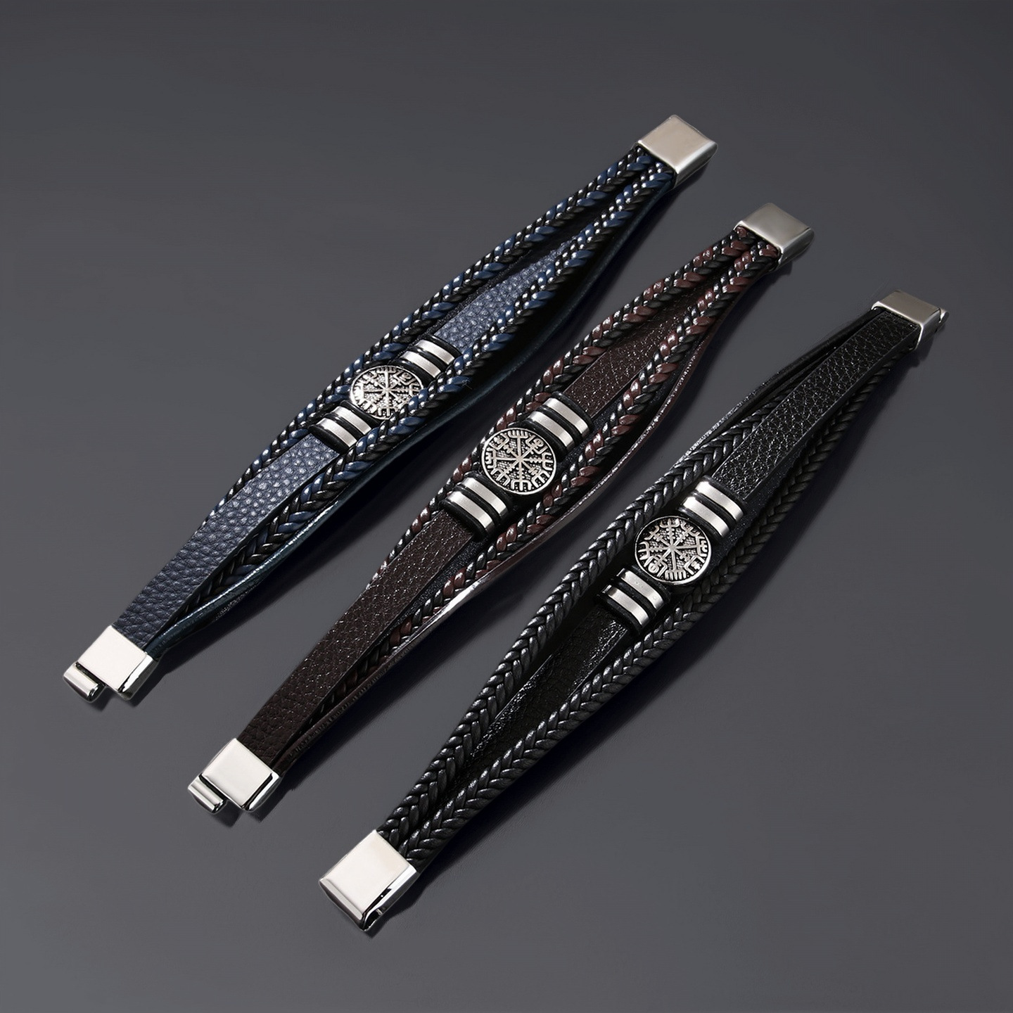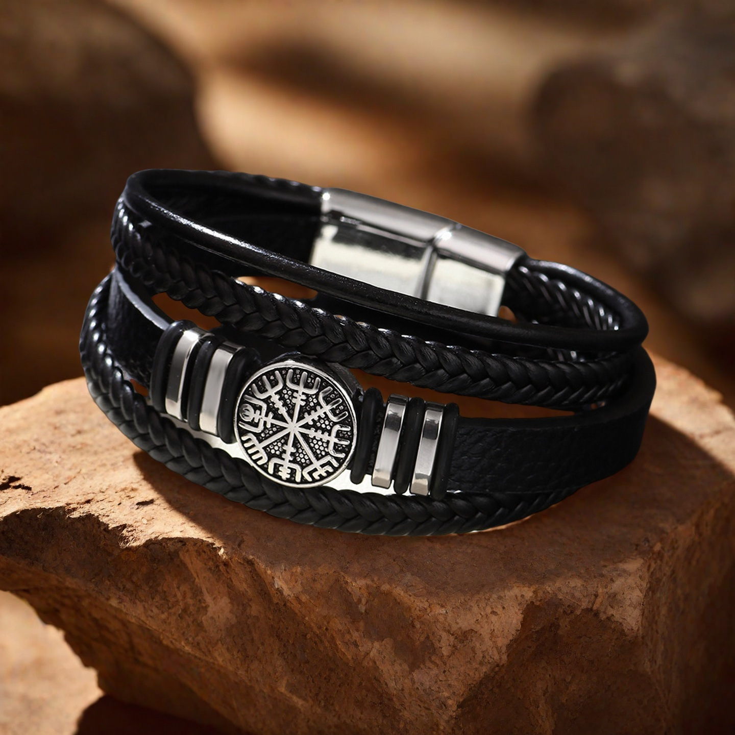 Titanium ocel Náramek, s PU, Kompas, vícevrstvá & různé velikosti pro výběr & pro muže, více barev na výběr, Prodáno By PC