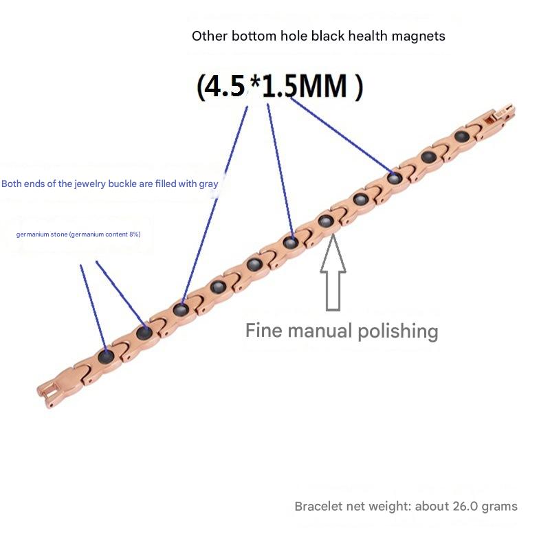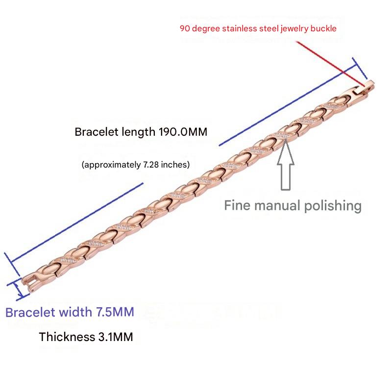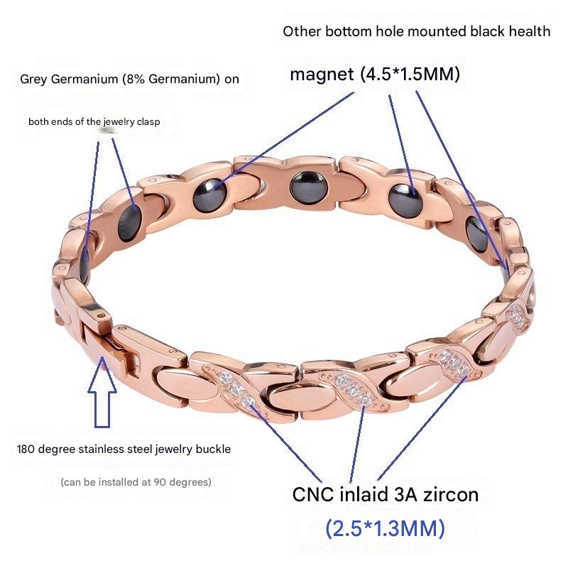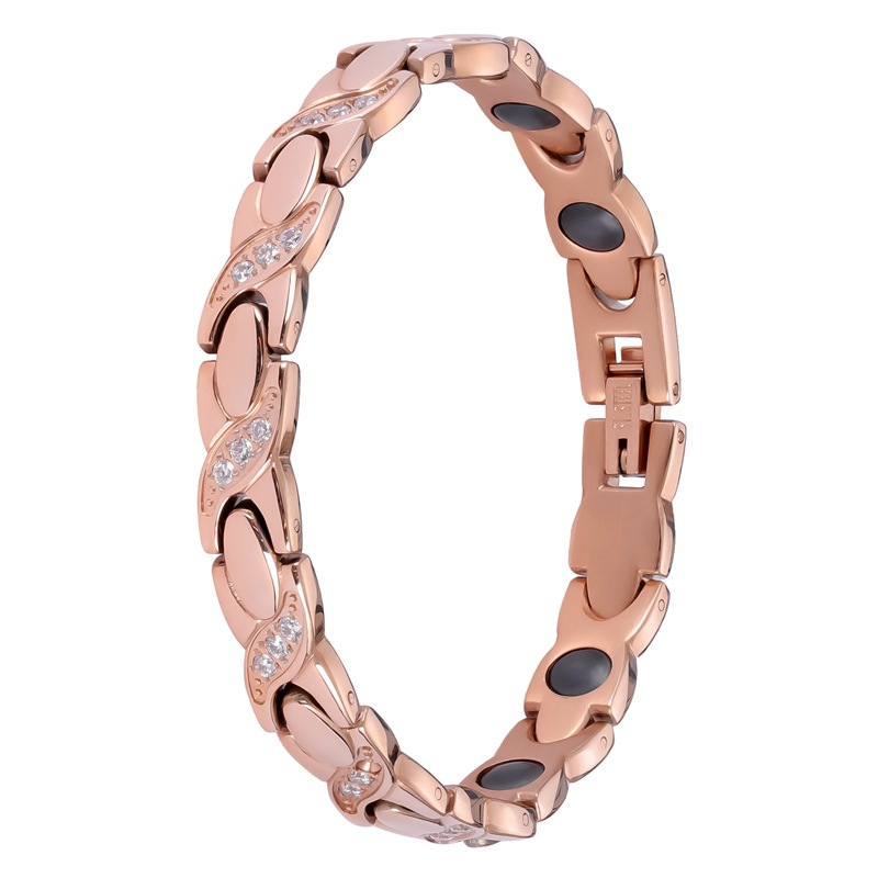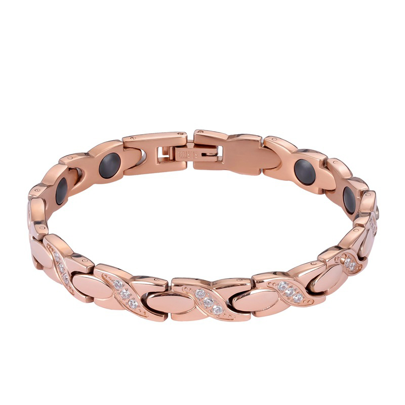 Titanium ocel Náramek, s Černá + magnetická + kamenná, micro vydláždit kubické zirkony & pro ženy, růže zlatá barva, Délka Cca 7.5 inch, Prodáno By PC