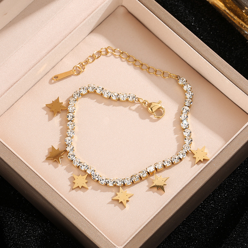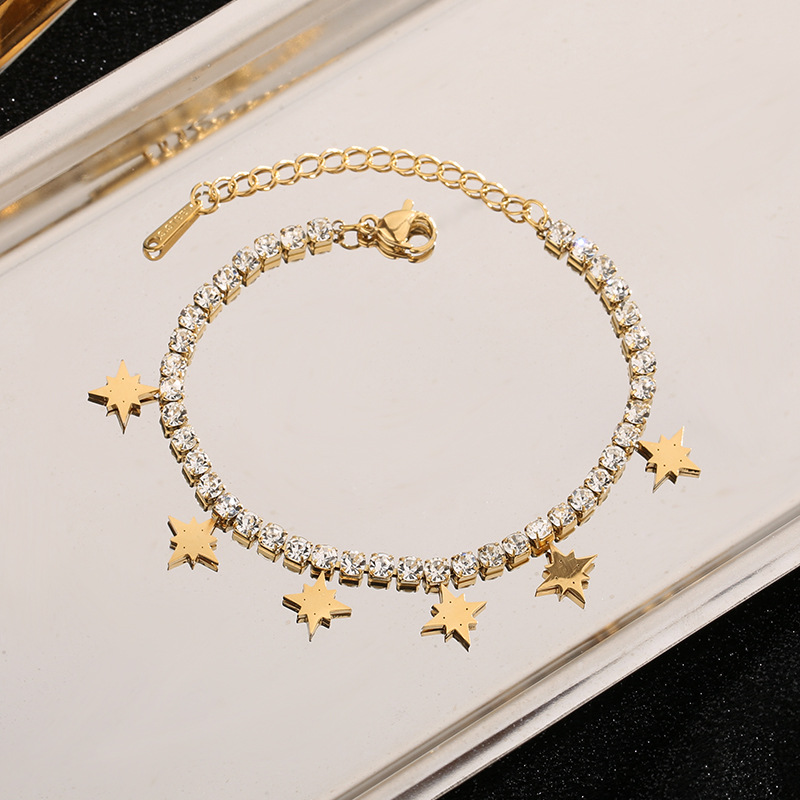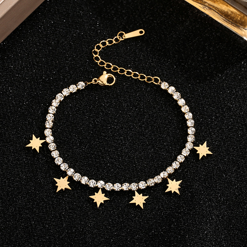 Titanium ocel náramek, s 5cm extender řetězce, módní šperky & pro ženy & s drahokamu, zlatý, Délka 16 cm, Prodáno By PC