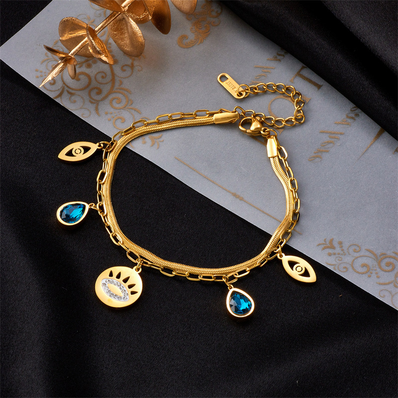 Titanium ocel náramek, Dvojitá vrstva & pro ženy & s drahokamu & dutý, zlatý, Prodáno By PC