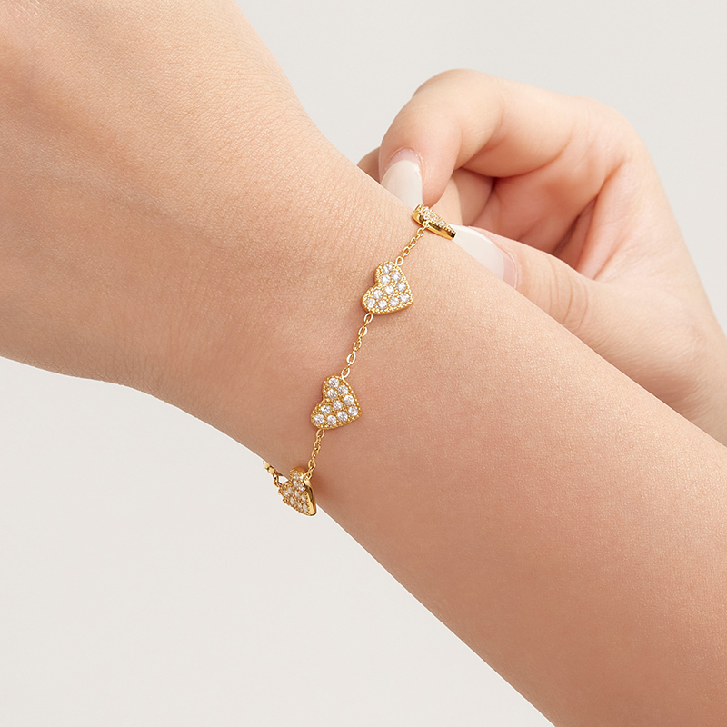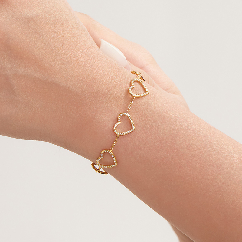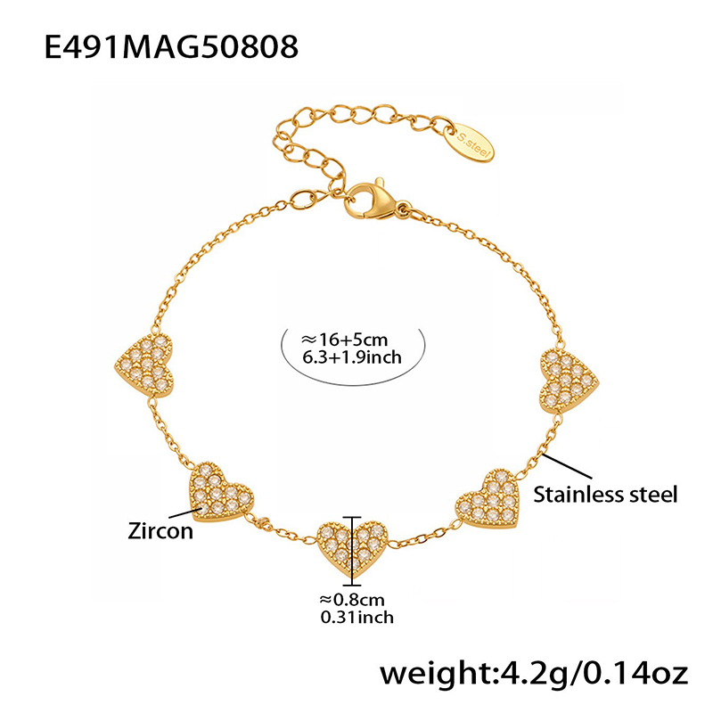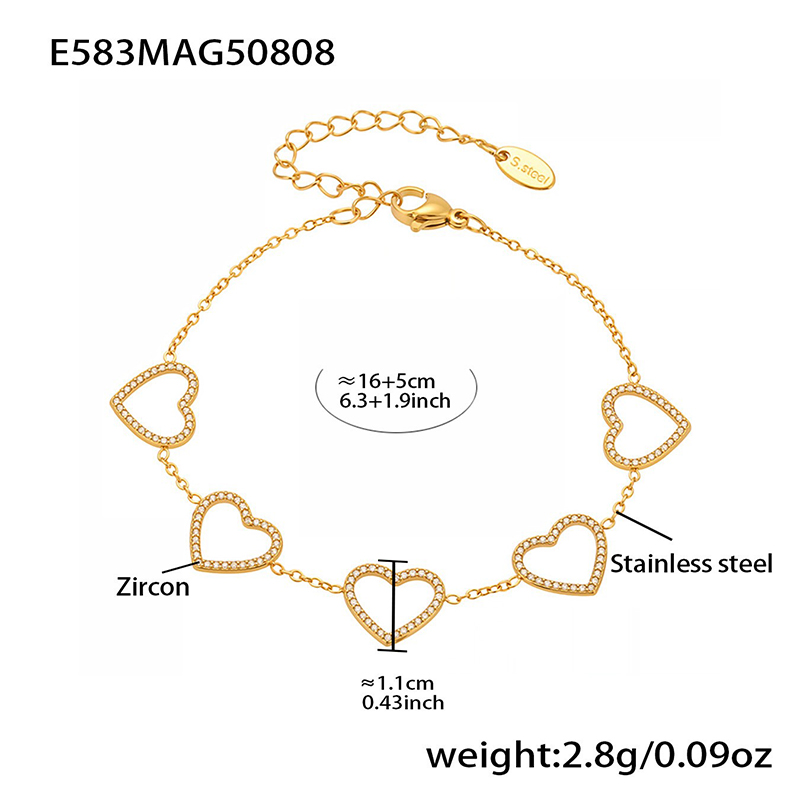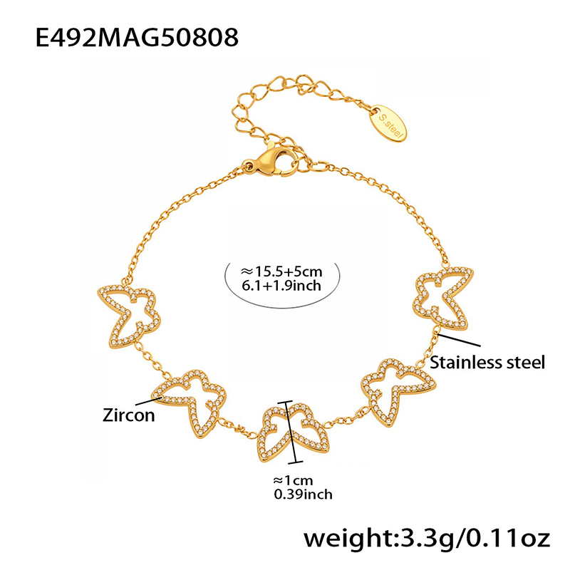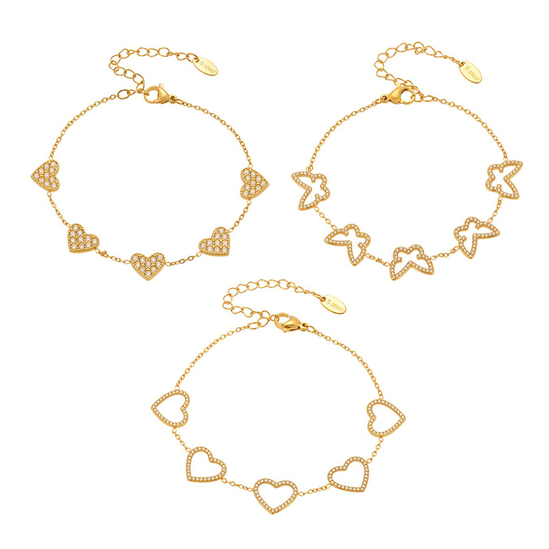1:E491- Golden Heart Bracelet, 16 5cm2:E492- Golden Butterfly Bracelet, 15 5cm3:E583- Golden Hollowed-out Heart Bracelet 16 5cm