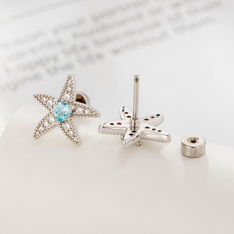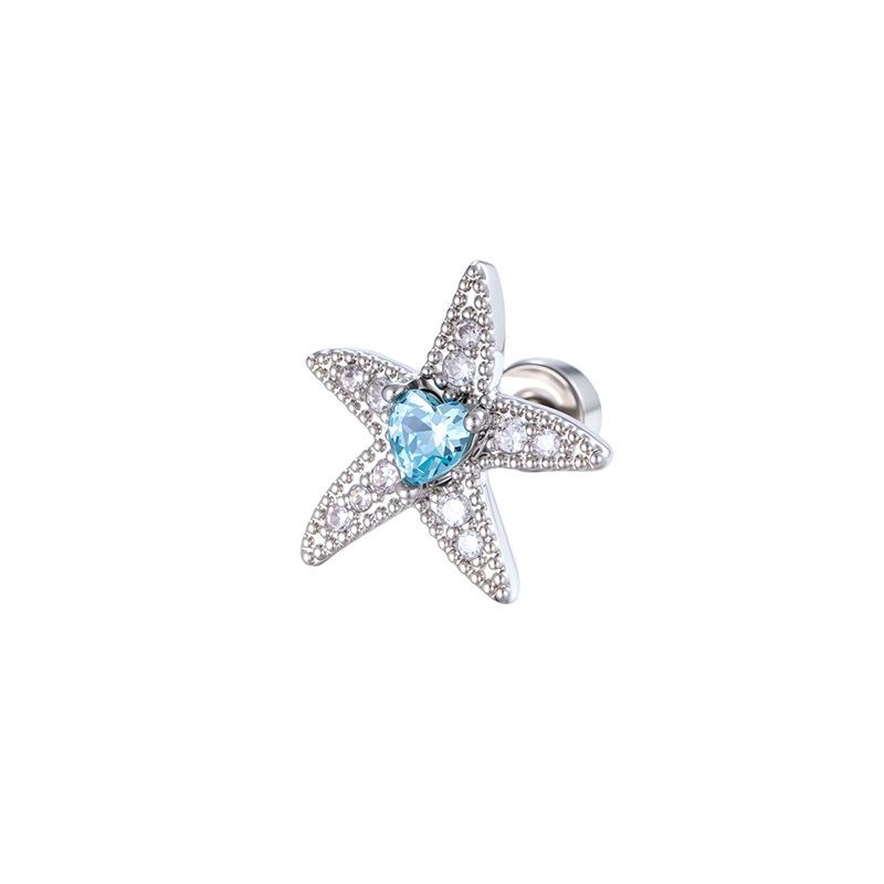 Titanium ocel piercing náušnice, s Mosaz, barva pozlacený, módní šperky & micro vydláždit kubické zirkony, modrý, Prodáno By PC