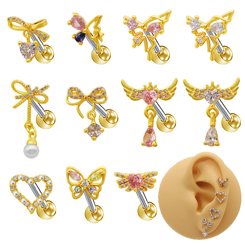 Titanium ocel piercing náušnice, s Plastové Pearl, unisex & různé styly pro výběr & micro vydláždit kubické zirkony, Prodáno By PC