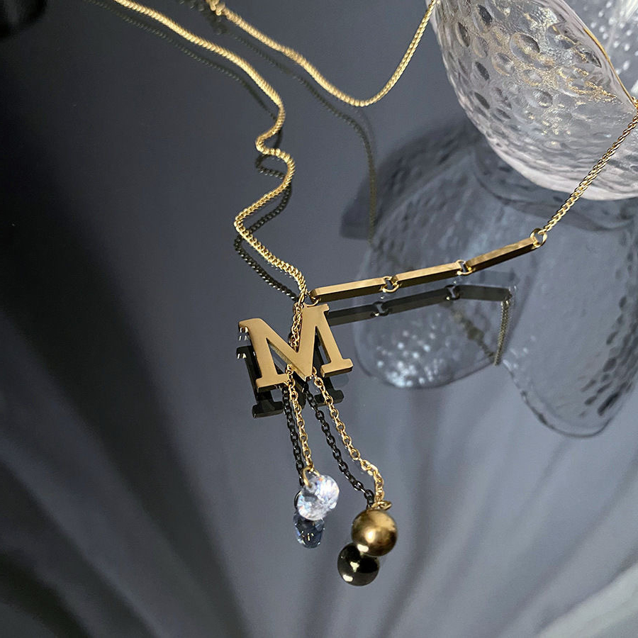 Titanová ocel náhrdelník, Titanium ocel, s Krystal, módní šperky & pro ženy, zlatý, Délka Cca 41-50 cm, Prodáno By PC