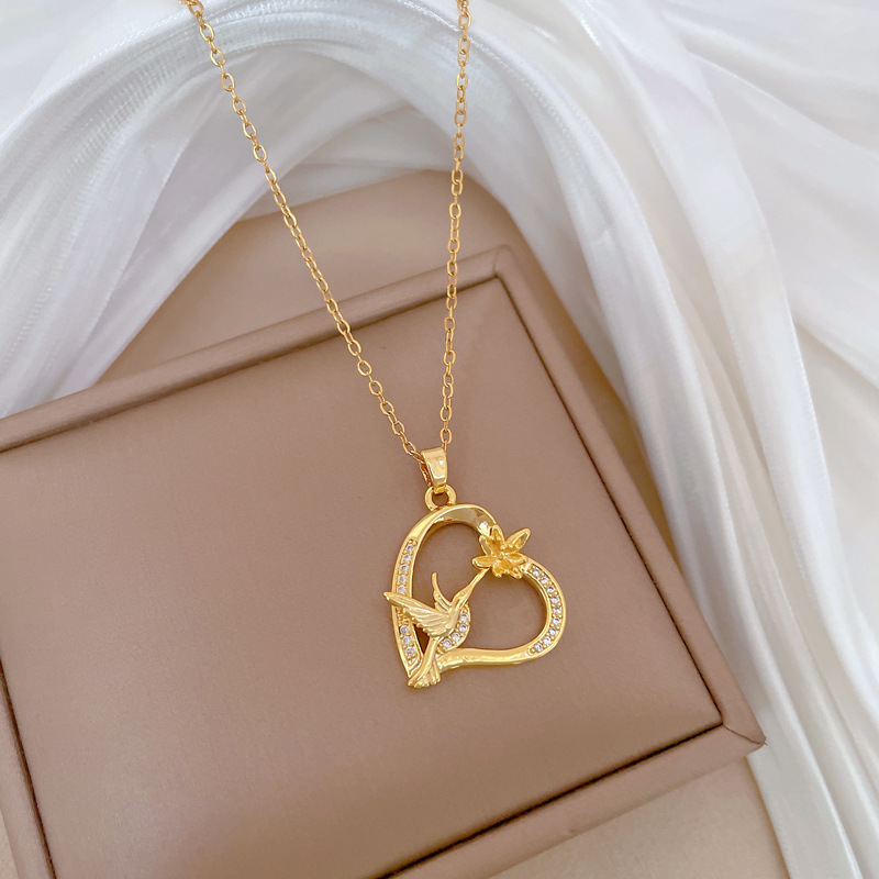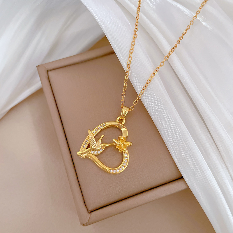 Titanová ocel náhrdelník, Titanium ocel, s Mosaz, micro vydláždit kubické zirkony & pro ženy & dutý, zlatý, Prodáno By PC