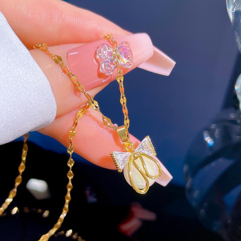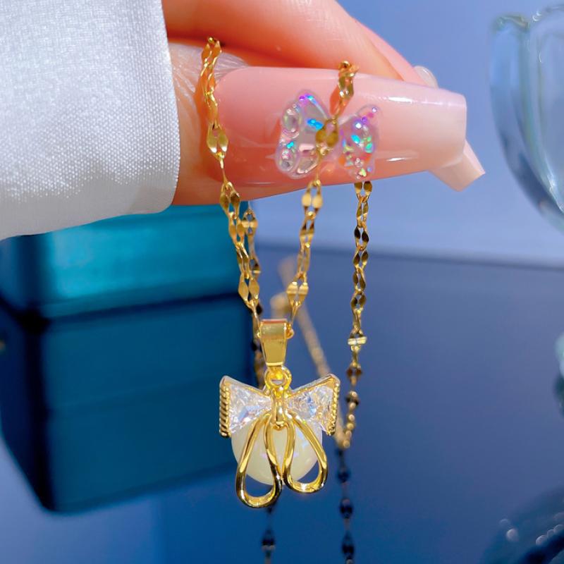Titanová ocel náhrdelník, Titanium ocel, s Umělá hmota, skutečný pozlacené, módní šperky & micro vydláždit kubické zirkony & pro ženy, Délka Cca 21-50 cm, Prodáno By PC