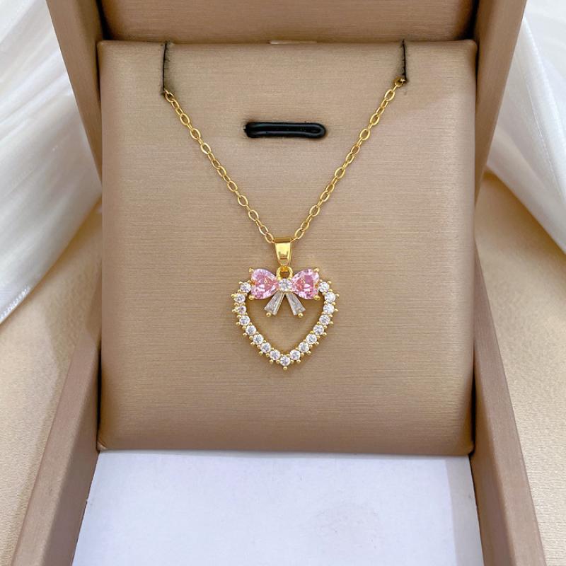 Titanová ocel náhrdelník, Titanium ocel, s Mosaz, micro vydláždit kubické zirkony & pro ženy & dutý, zlatý, Prodáno By PC