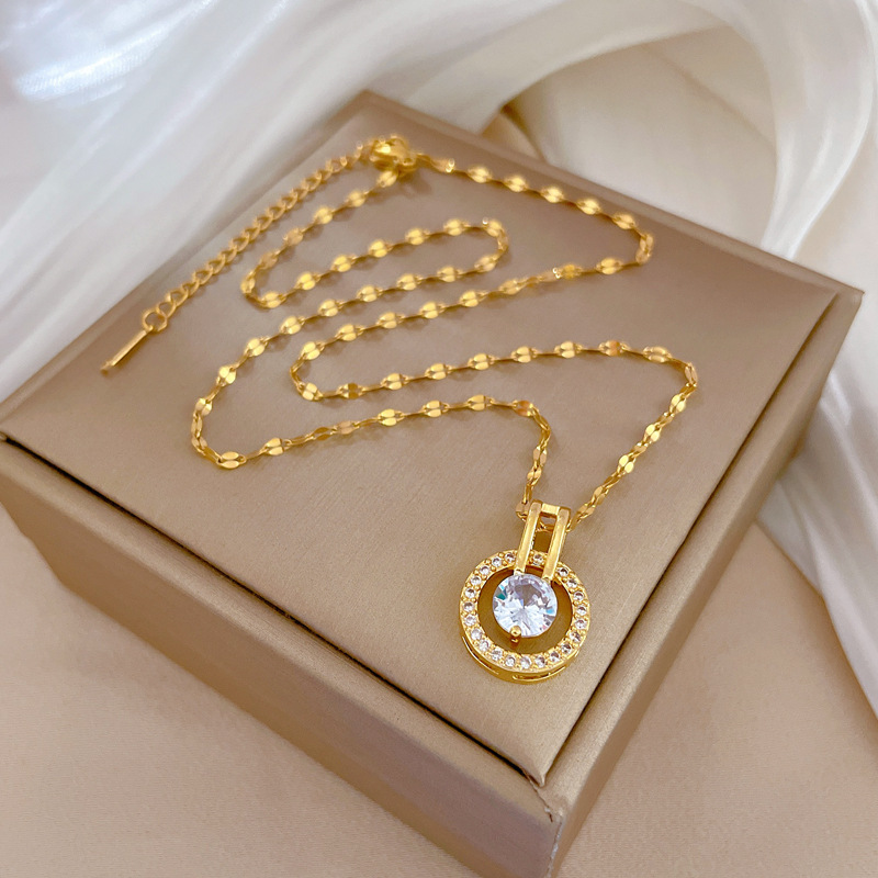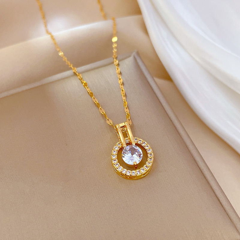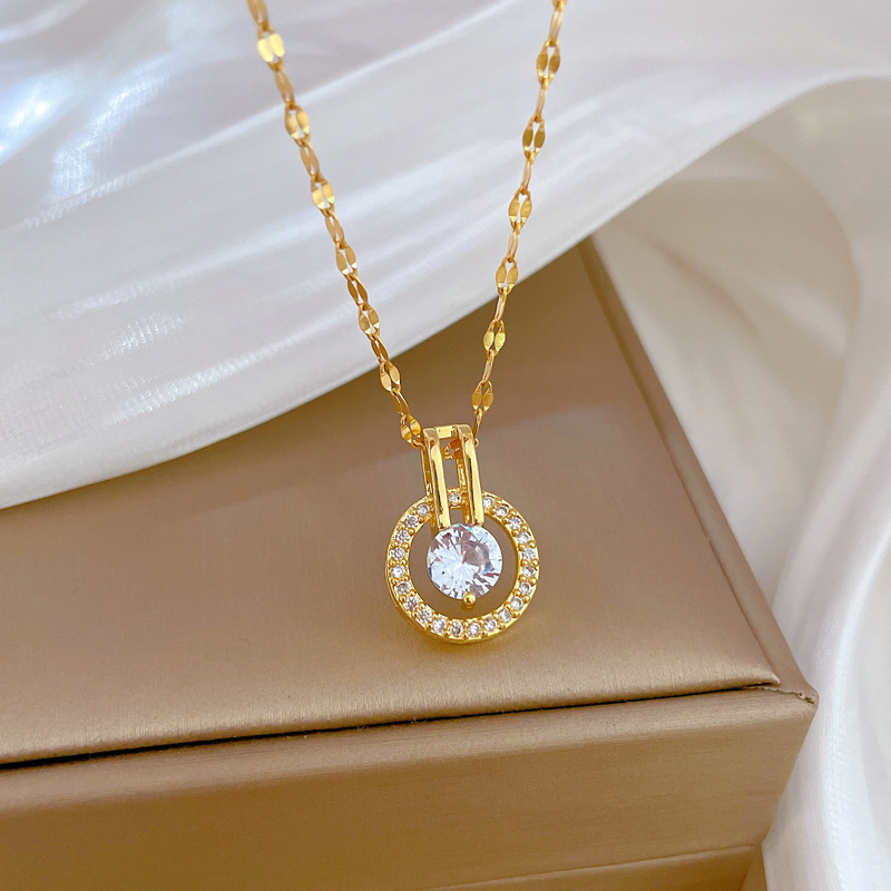 Titanová ocel náhrdelník, Titanium ocel, s Mosaz, micro vydláždit kubické zirkony & pro ženy & dutý, zlatý, Prodáno By PC