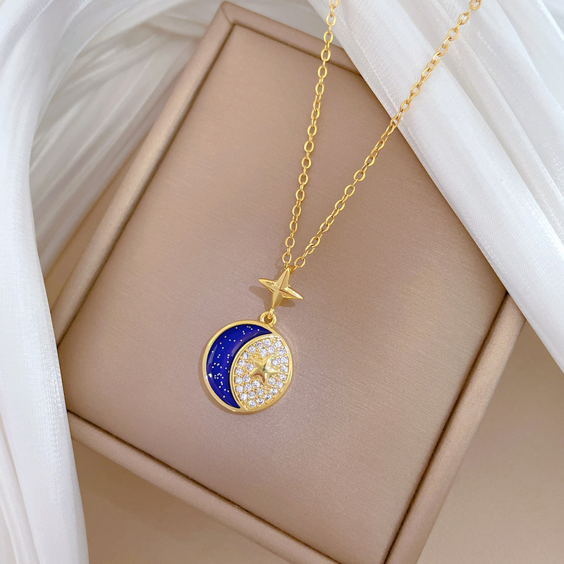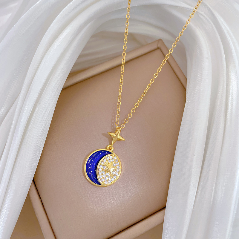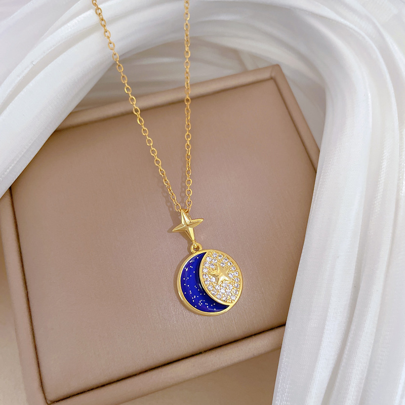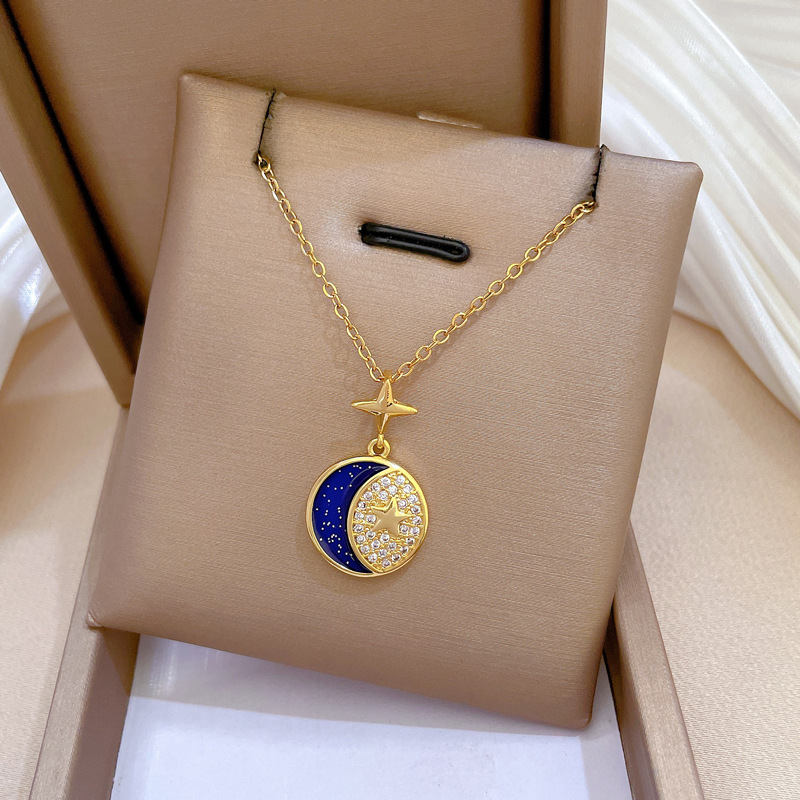 Titanová ocel náhrdelník, Titanium ocel, s Mosaz, micro vydláždit kubické zirkony & pro ženy & smalt, zlatý, Prodáno By PC