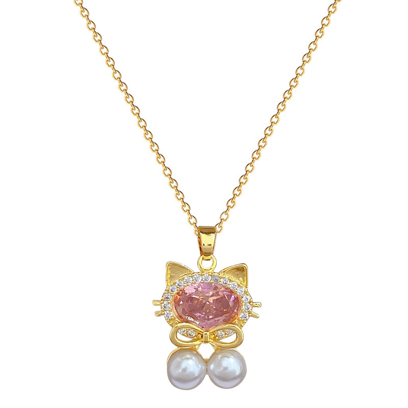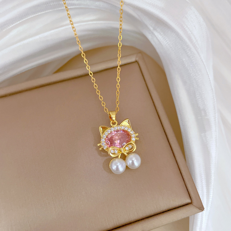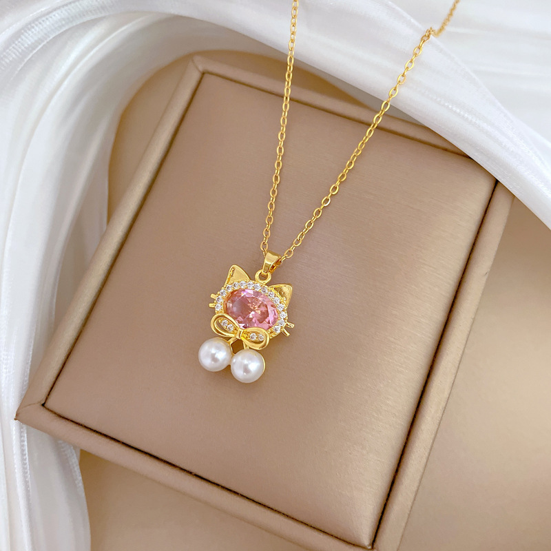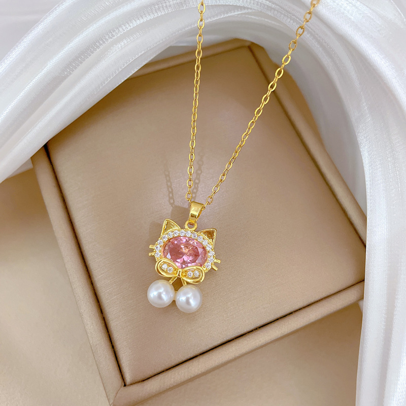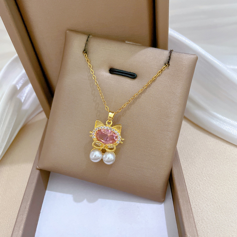 Titanová ocel náhrdelník, Titanium ocel, s Plastové Pearl & Mosaz, módní šperky & micro vydláždit kubické zirkony & pro ženy, zlatý, Prodáno By PC