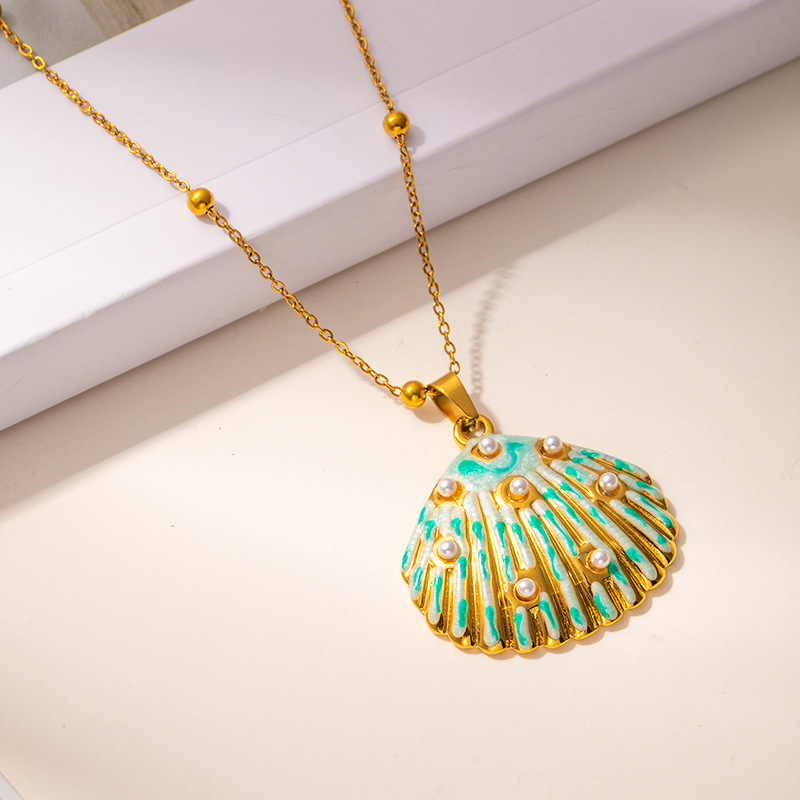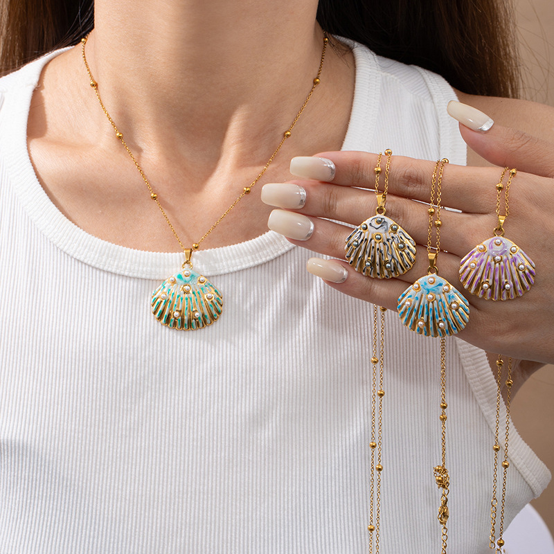 Titanová ocel náhrdelník, Titanium ocel, s Plastové Pearl, barva pozlacený, módní šperky & smalt, více barev na výběr, Prodáno By PC