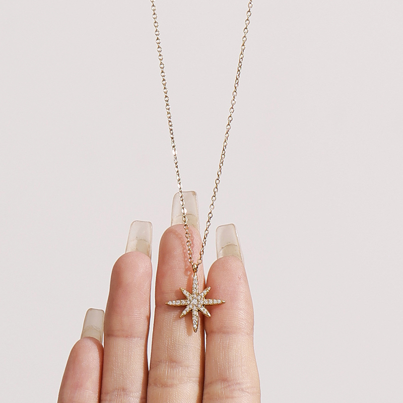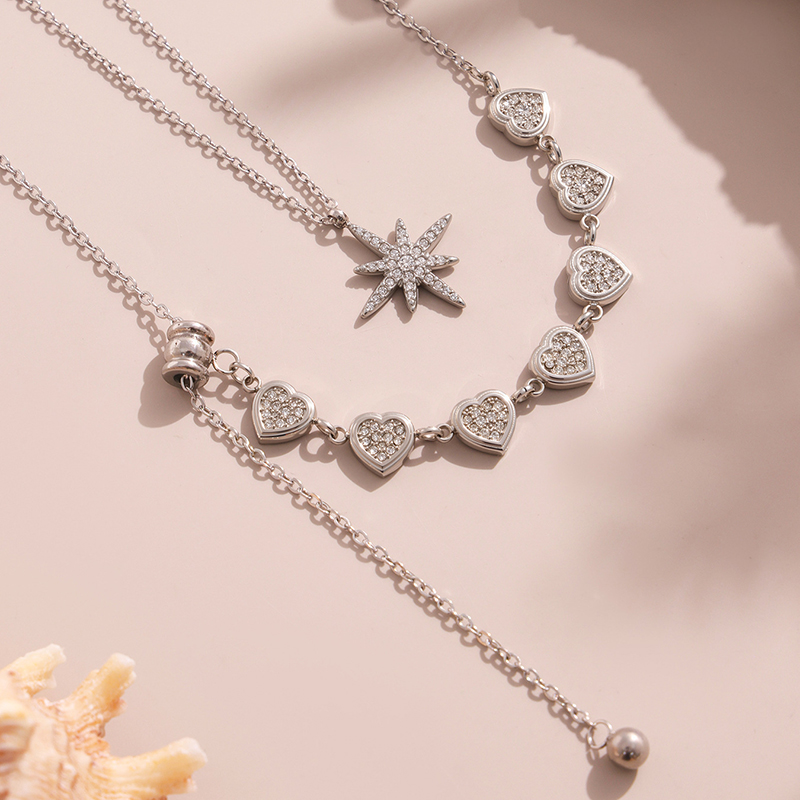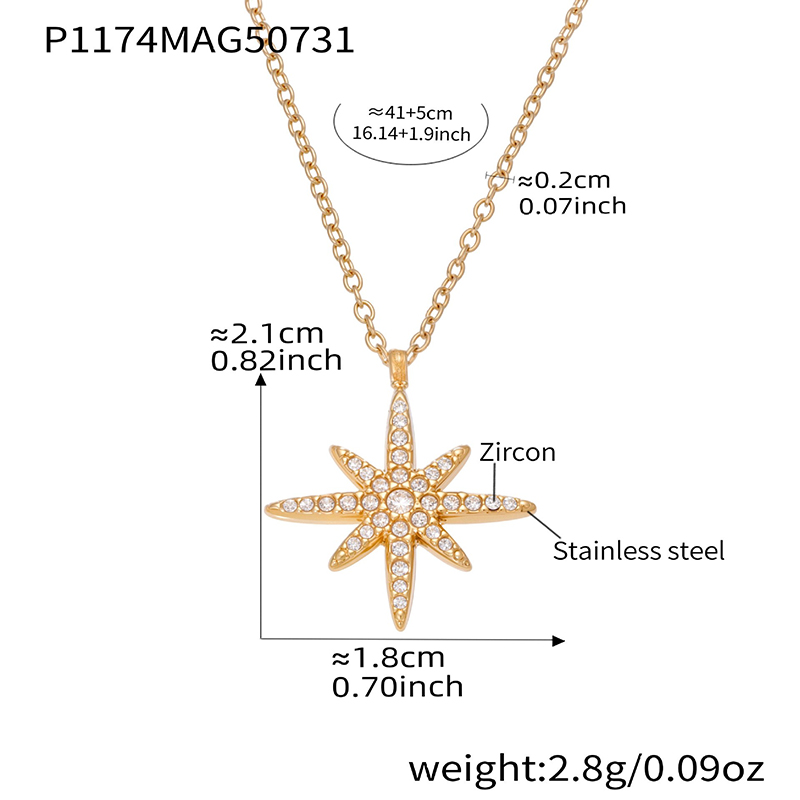 1:P1172- Golden Heart Pull-out Necklace, 64cm2:P1172- Steel heart-shaped pull-out necklace, 64cm3:P1174- Golden Eight-pointed Star necklace, 41 5cm4:P1174- Steel octagonal necklace, 41 5cm