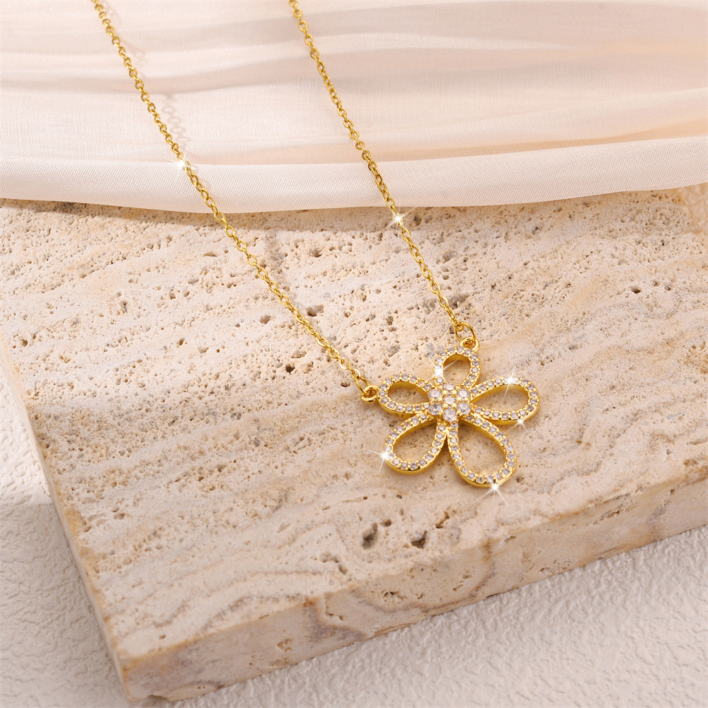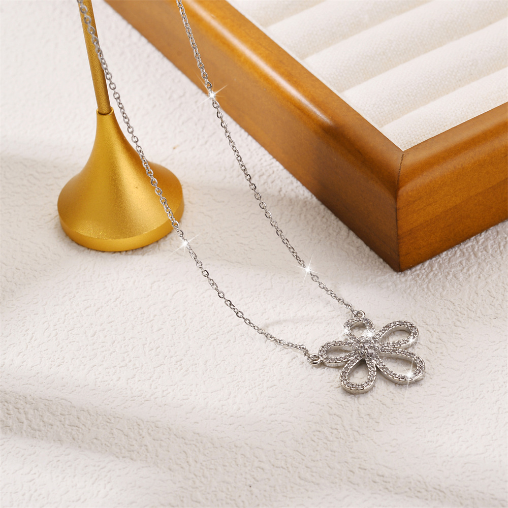 Titanová ocel náhrdelník, Titanium ocel, Květina, módní šperky & mikro Pave drahokamu & pro ženy, více barev na výběr, Prodáno By PC