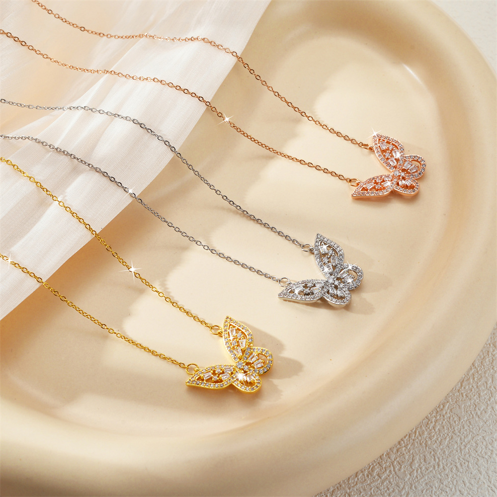 Titanová ocel náhrdelník, Titanium ocel, Motýl, micro vydláždit kubické zirkony & pro ženy & dutý, více barev na výběr, Prodáno By PC